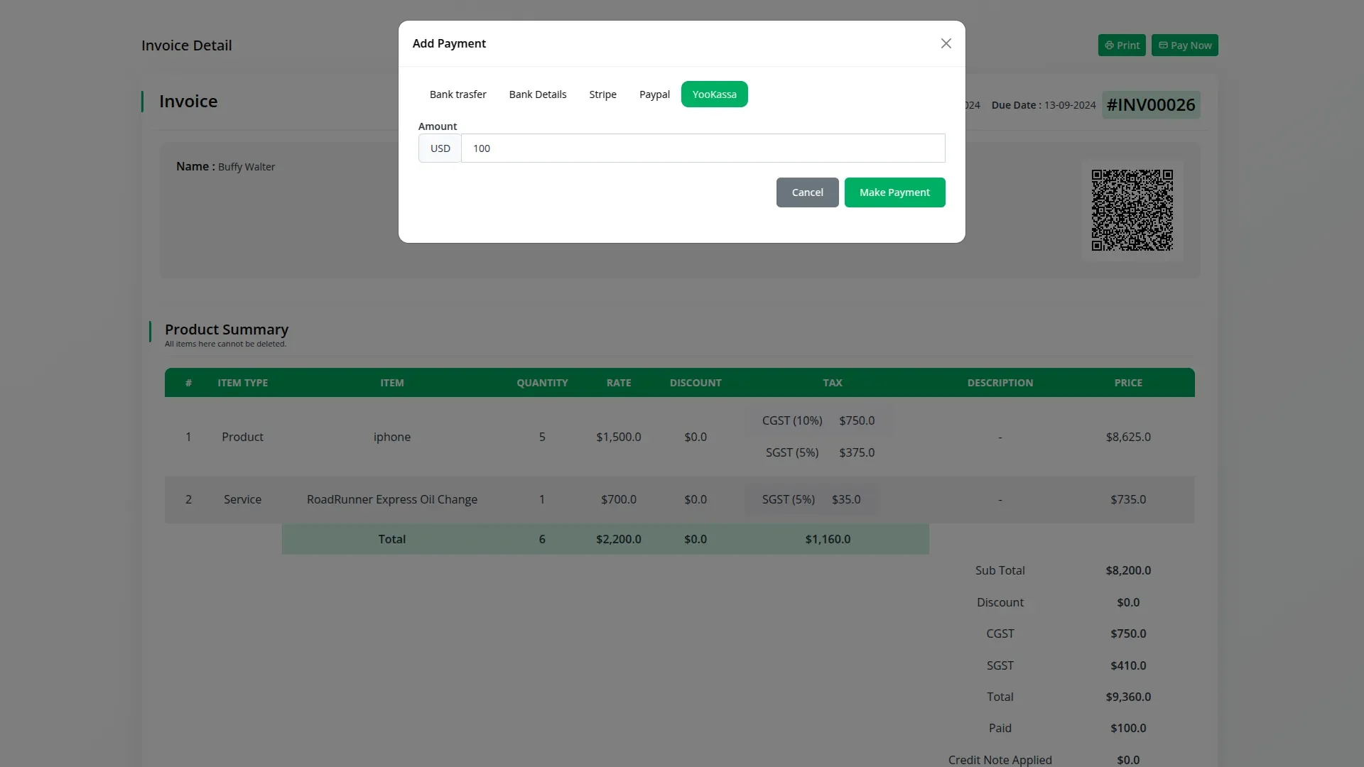 YooKassa – Dash SaaS Add-On.Easily integrate YooKassa payment gateway into your Dash SaaS platform with this powerful add-on. Enable secure online payments in Russian Rubles (RUB) using local methods like QIWI, WebMoney, SberPay, Tinkoff Pay, and international credit/debit cards. Ideal for businesses targeting the Russian and CIS markets, the YooKassa add-on streamlines transactions across invoicing, LMS, subscriptions, and more. Super Admins can quickly configure the Shop ID and Secret Key for seamless and reliable payment processing. Boost conversions with a localized YooKassa integration for Dash SaaS ERP.