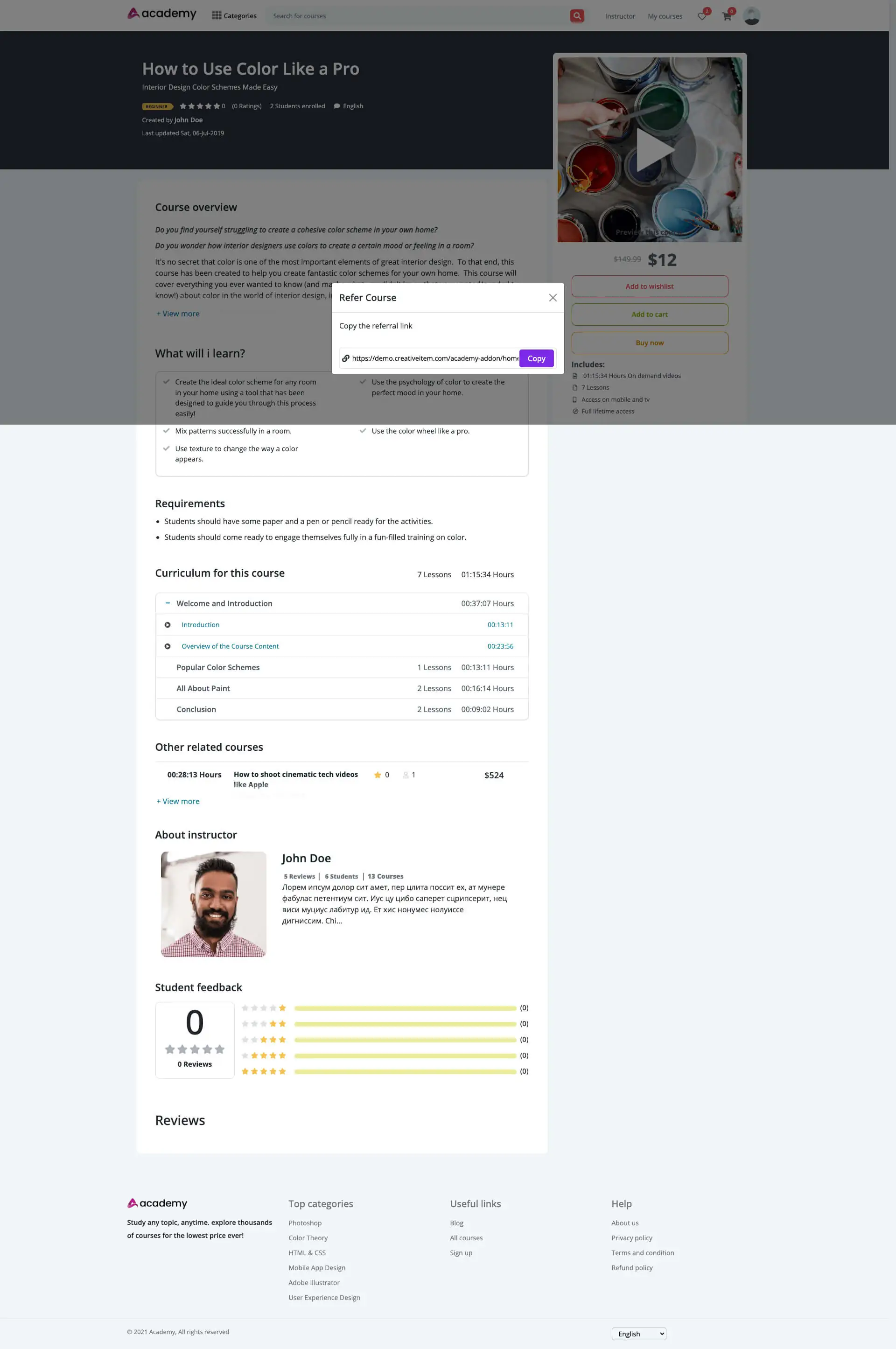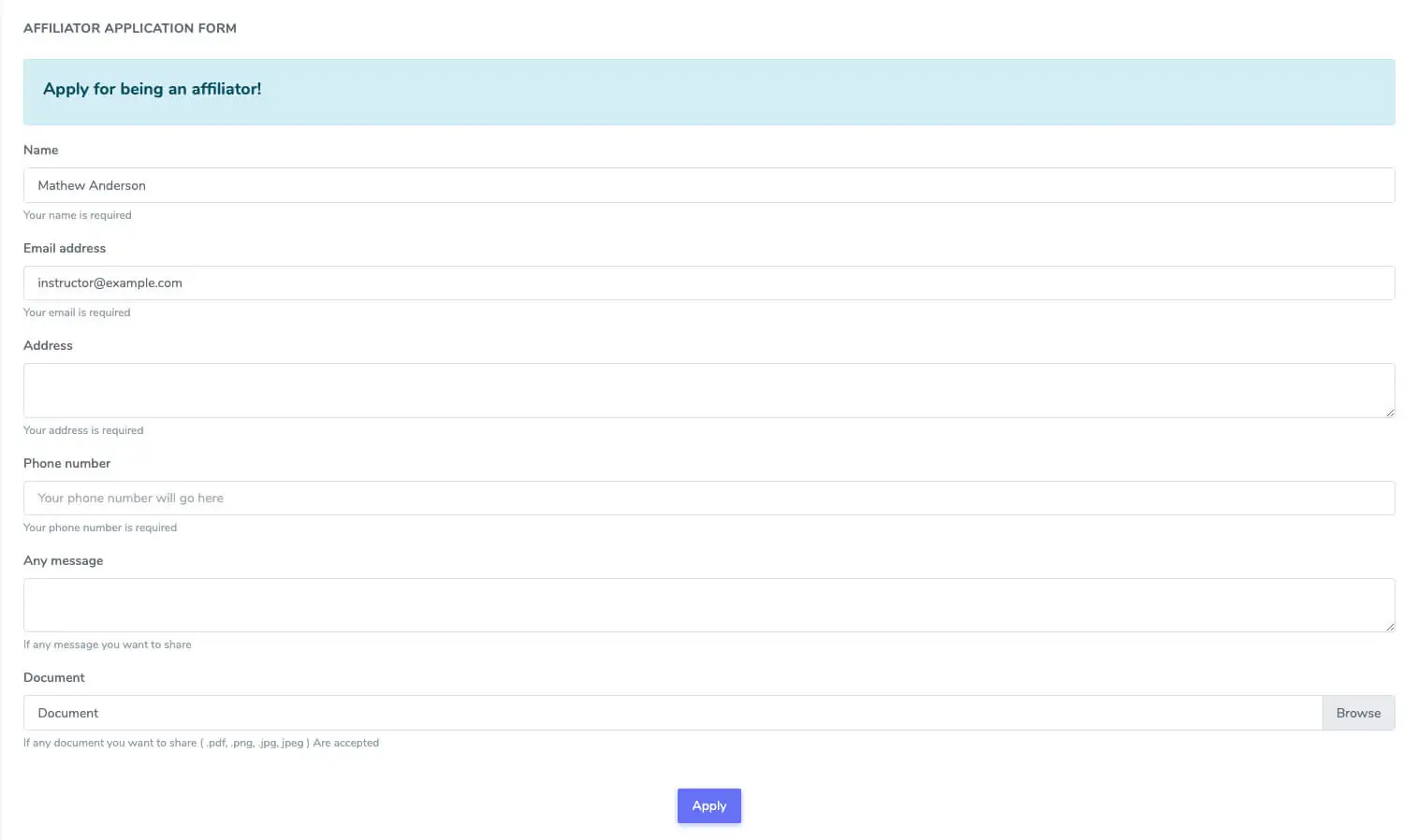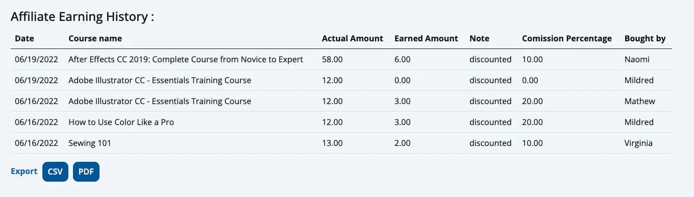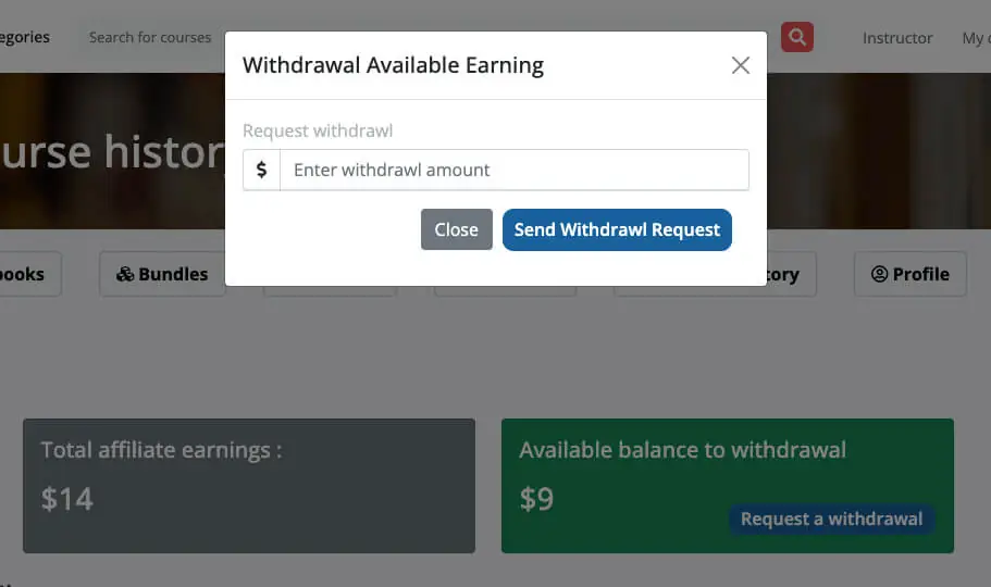 This addon provides affiliate earning from course selling of Academy LMS. Any user can sign up for being an affiliator. An affiliator can refer a course to any number of students and from each sale he makes, he earns a certain percentage of commission. This is a gain for both the affiliator and the course instructor.