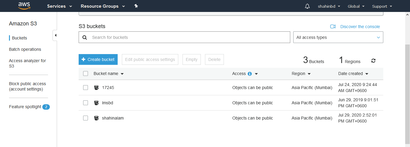 Admin panel: Configure S3 addon for Academy LMS from your AWS account credentials