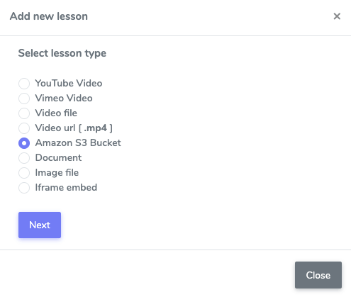 Admin panel: Get Amazon S3 option during lesson creation type form