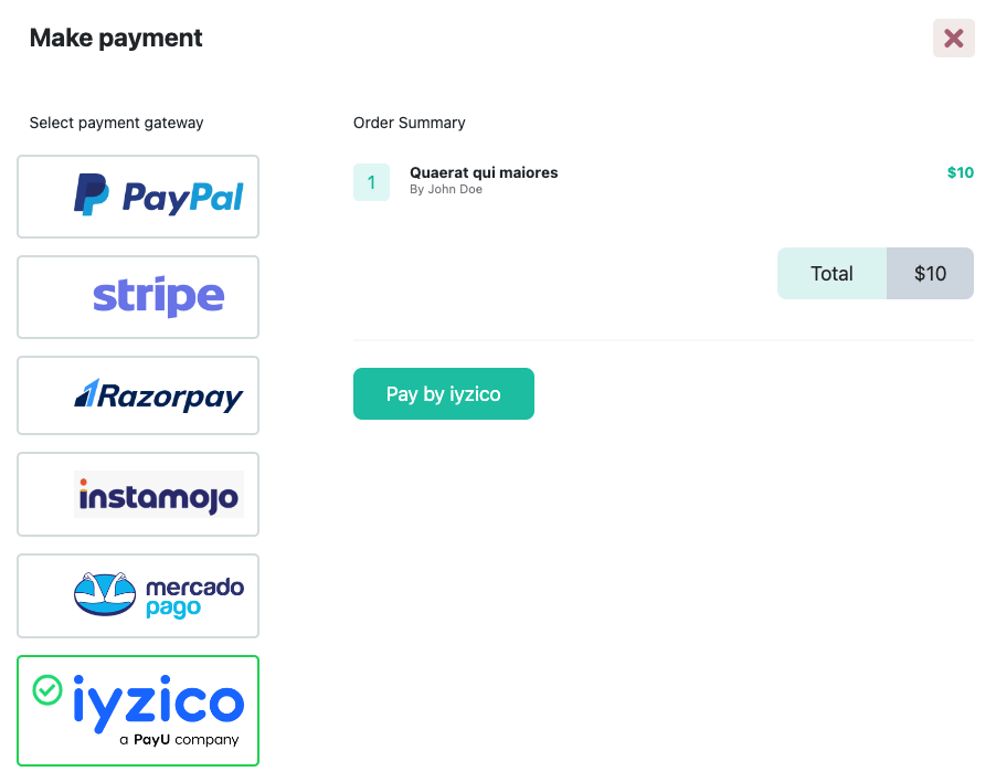 The Iyzico Payment Gateway Addon for Academy LMS enables secure and seamless course purchases using the trusted Iyzico payment system. Students can pay directly via card at checkout, boosting enrollment and user convenience. Easy to install and configure, this eLearning payment addon helps admins and instructors monetize online courses efficiently with smooth transaction processing and commission management.