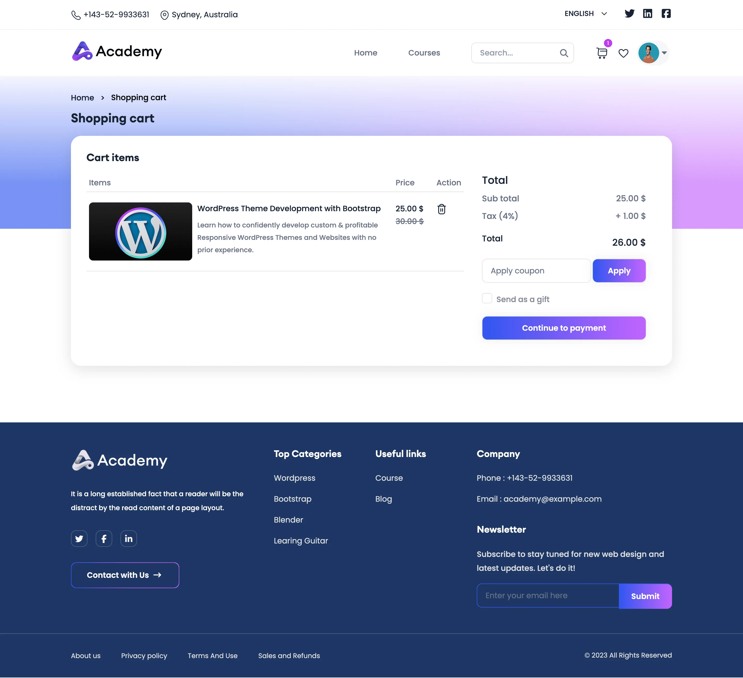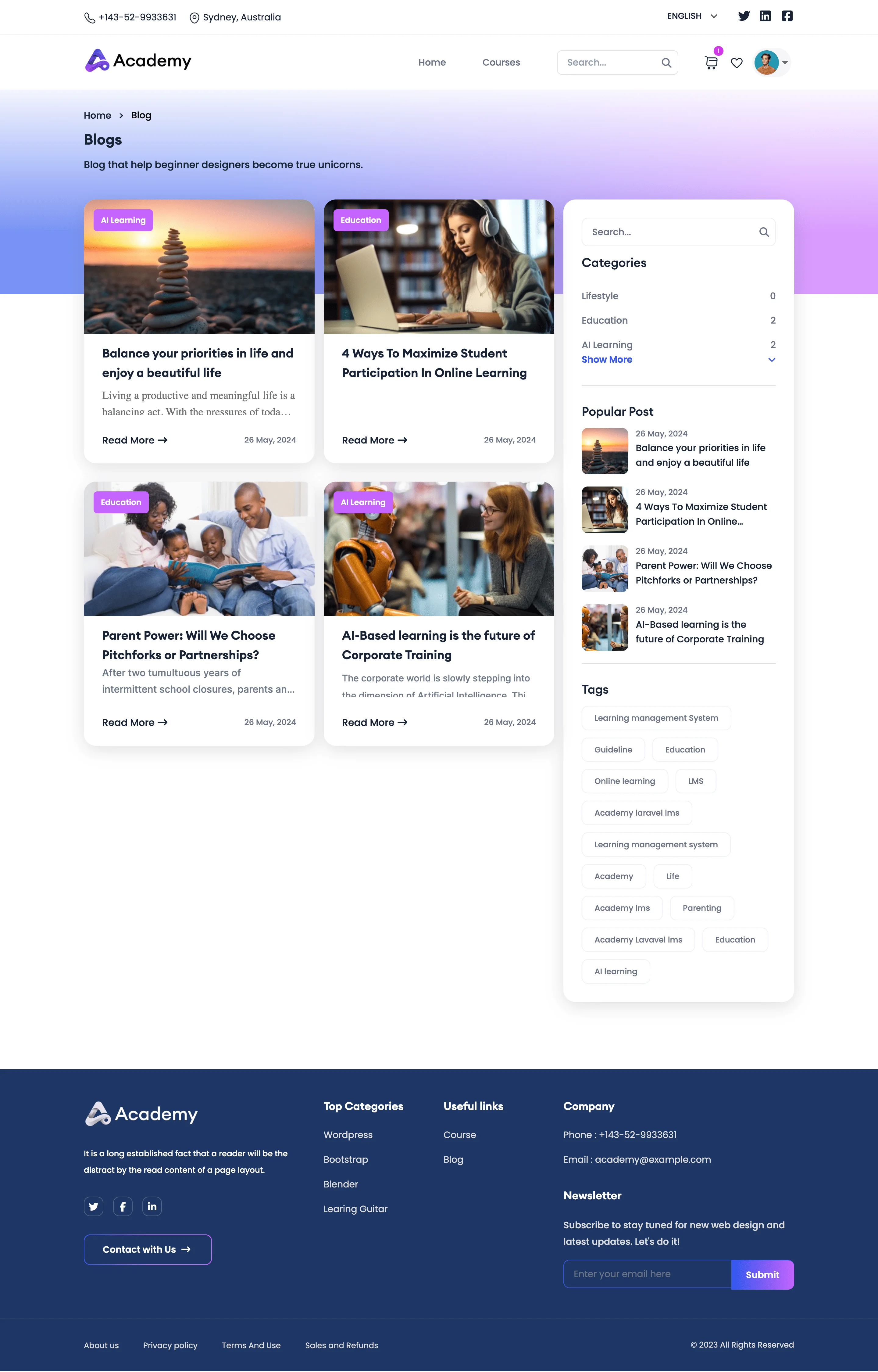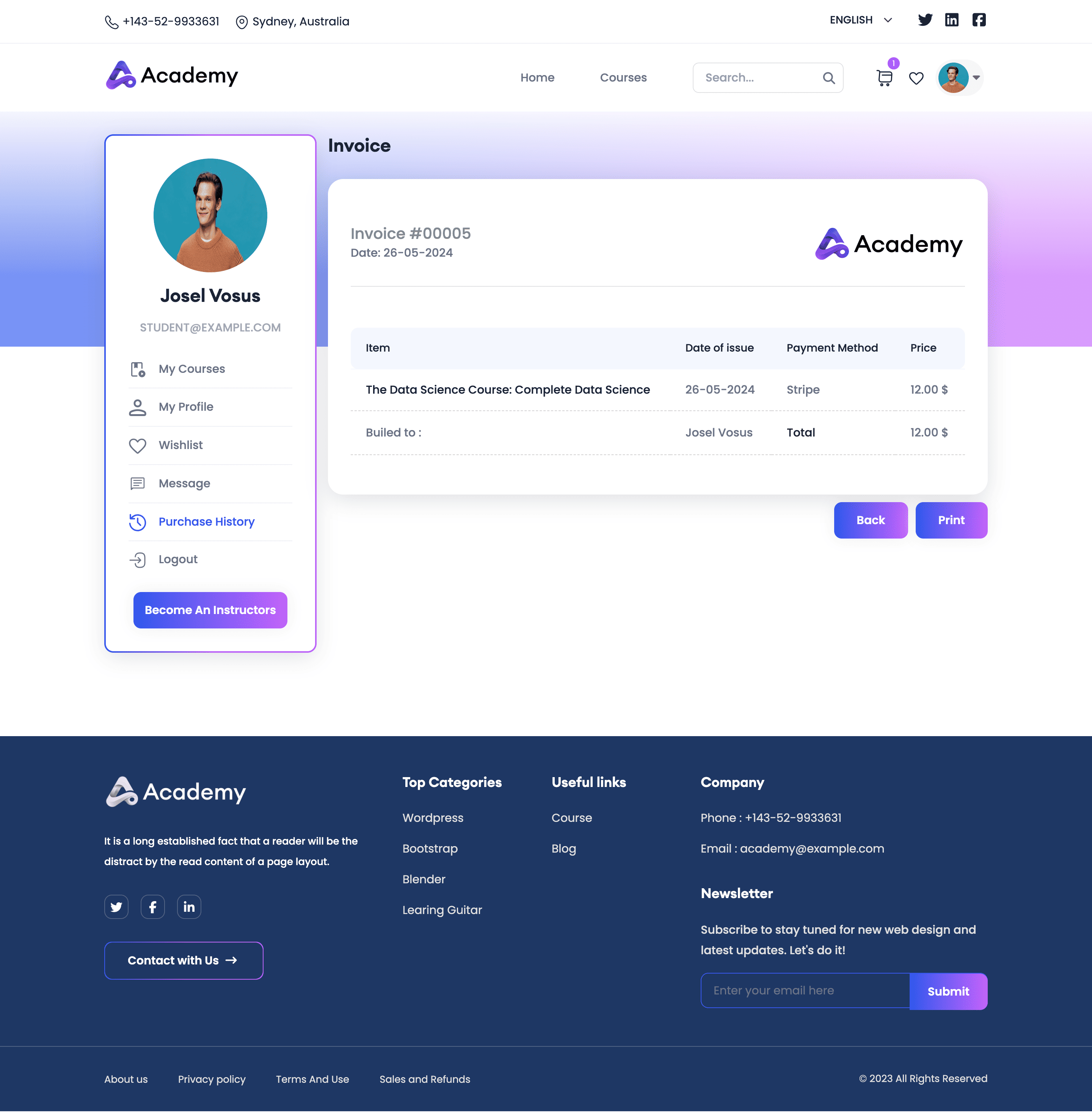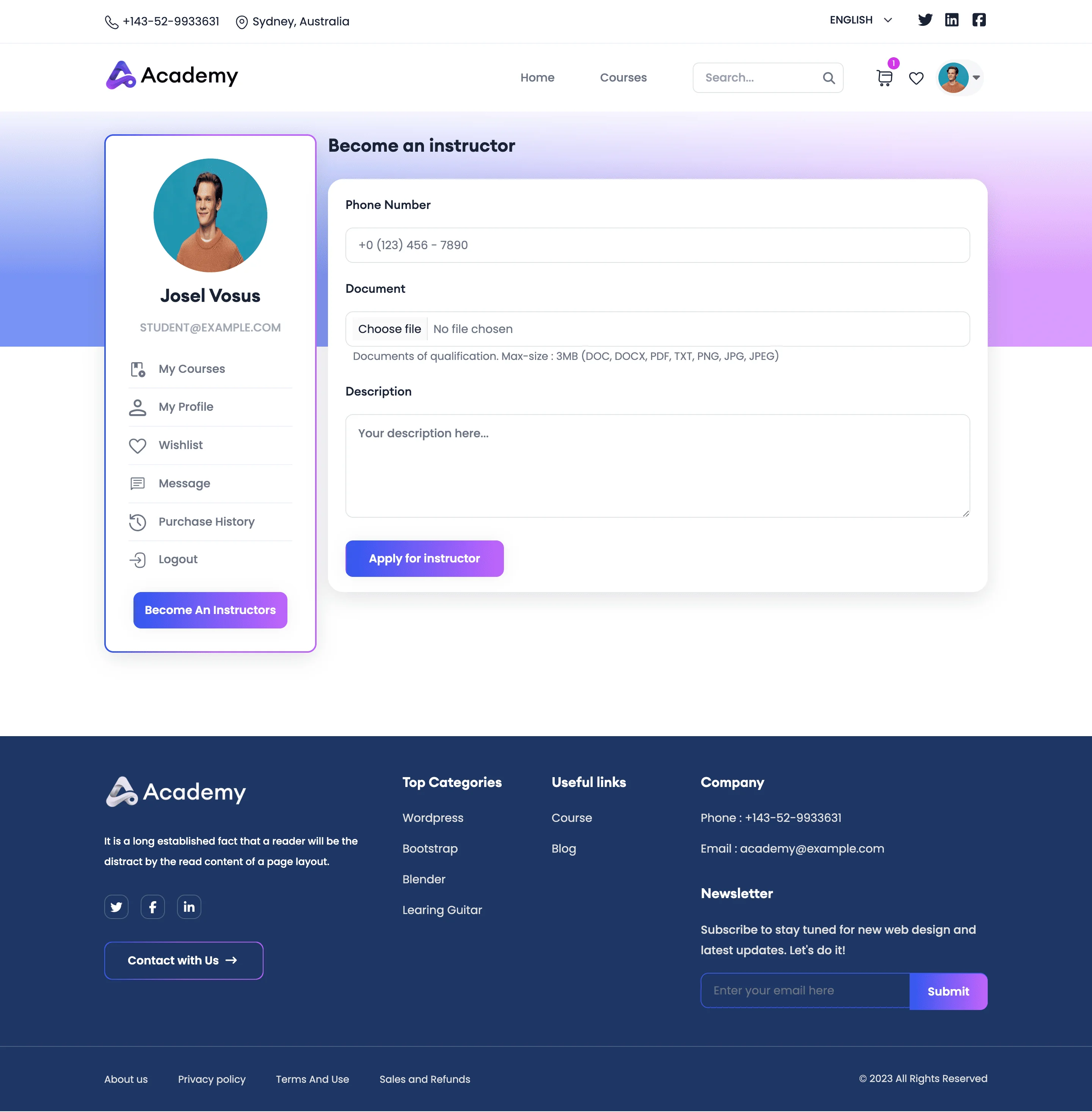 Academy LMS Laravel is a powerful learning management system (LMS) designed for modern education and eLearning. Instructors can create AI-powered online courses, manage tutorials, and track revenue with ease. With features like Zoom live classes, certificate builder, quizzes, multi-language support, payment gateways (PayPal, Stripe, Razorpay), and student engagement tools, it’s the ultimate online course platform for growth.