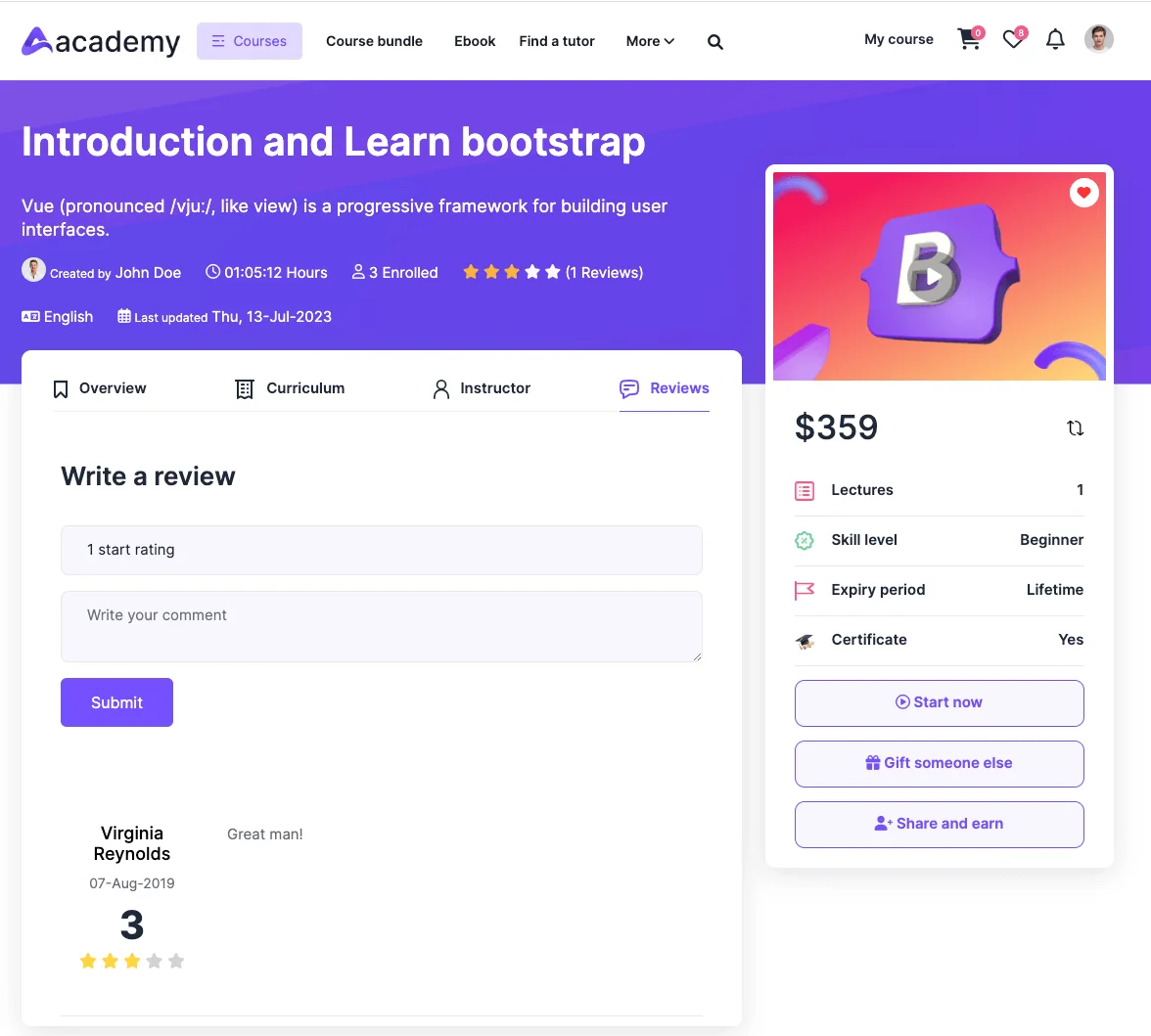 So start selling your courses by installing ACADEMY and make your online business today.