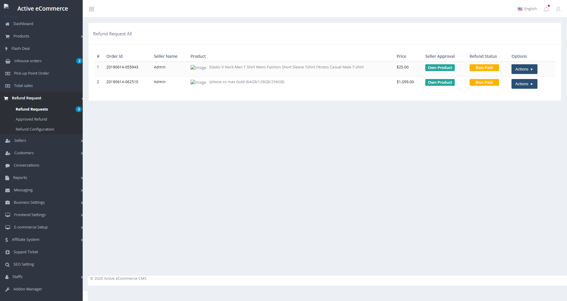 The Refund Add‑on is an extension for Active eCommerce CMS by Active IT Zone. It enables customers to request refunds for products they have purchased, and lets vendors/sellers or admins approve/refuse those requests.