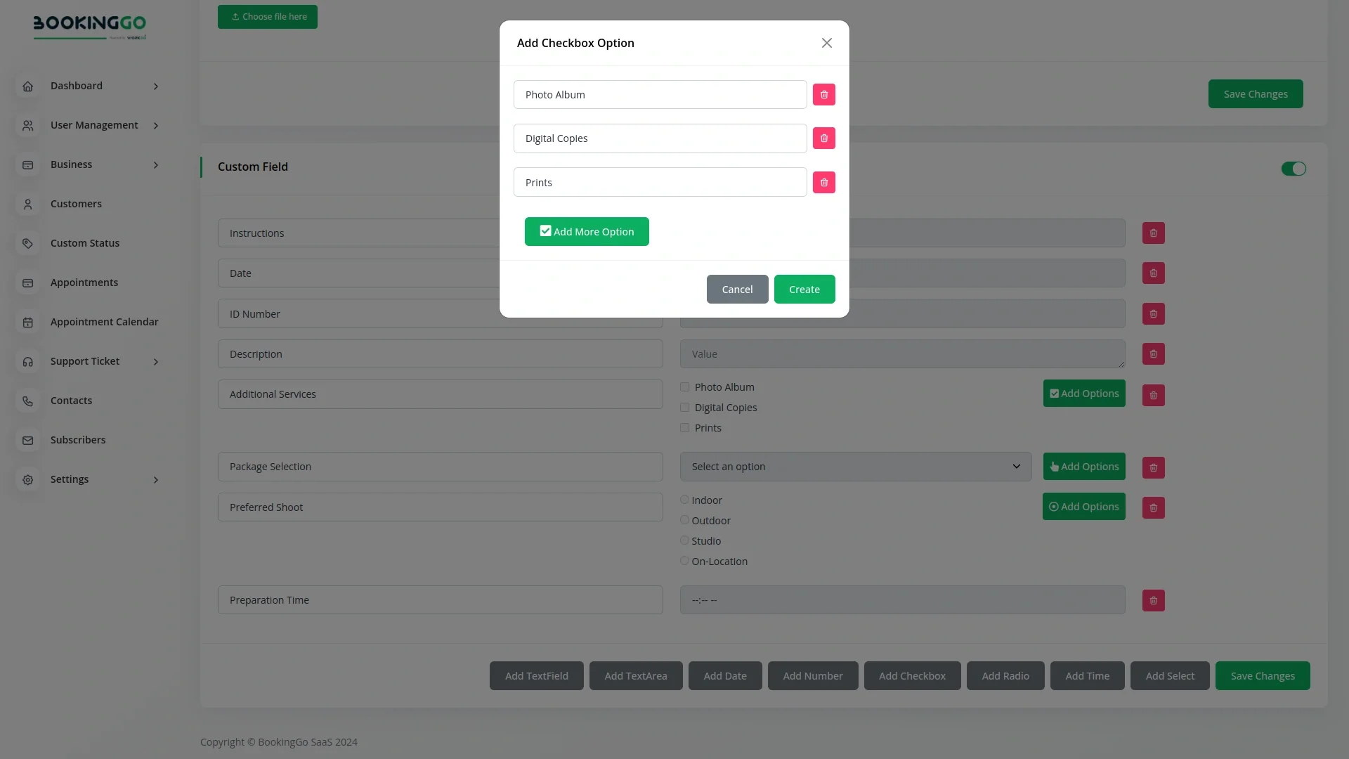 The Additional Custom Field Add-On for BookingGo SaaS allows businesses to personalize booking forms by adding extra input fields tailored to their needs. Whether you want to collect special instructions, preferences, or additional customer details, this add-on makes it easy to capture relevant information beyond the default form fields.