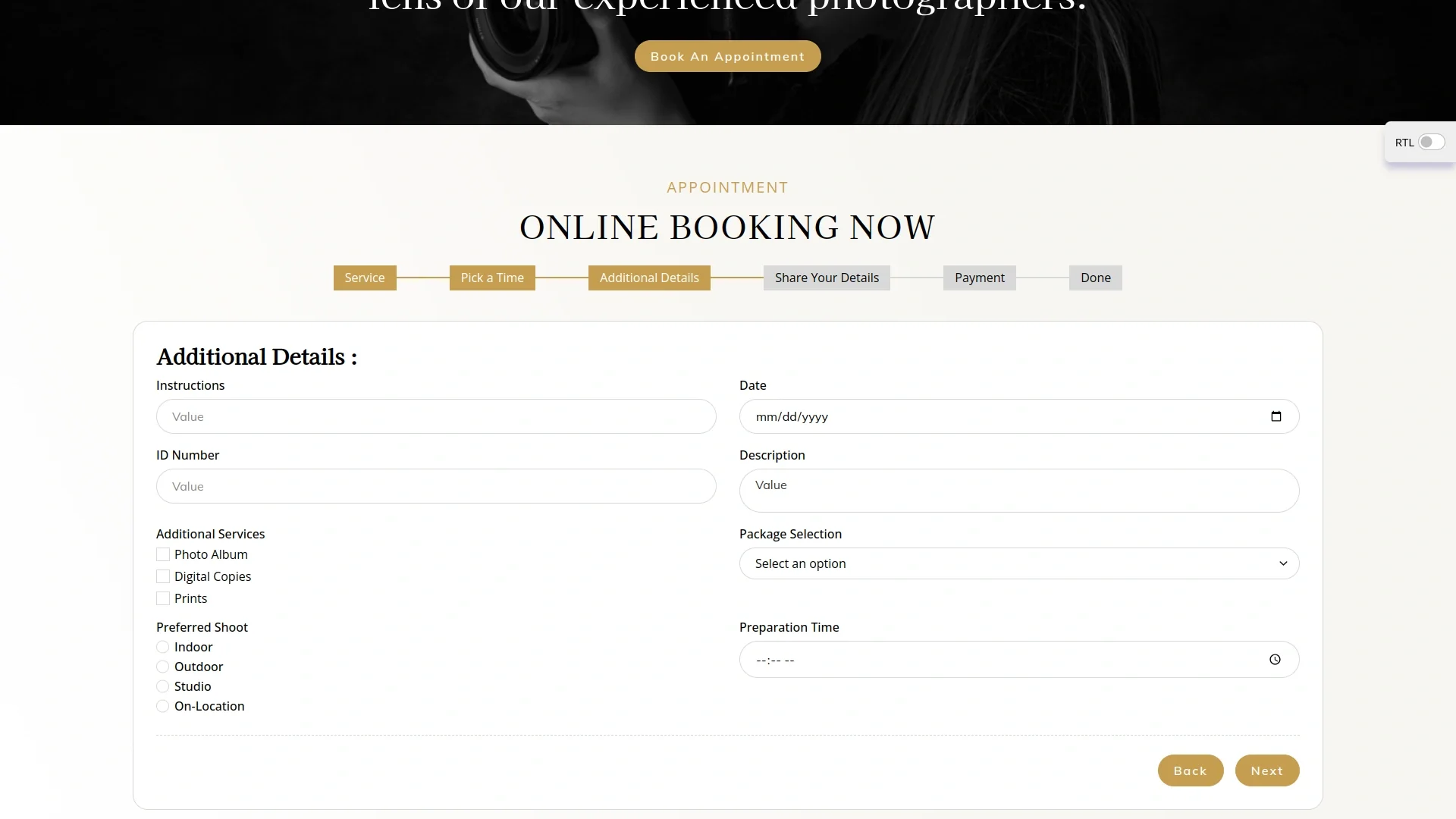 BookingGo allows you to enhance your primary service with various personalized options, ensuring your appointment is tailored to meet your specific needs. By selecting from our range of additional services, you can customize your experience to include special amenities or services that elevate your satisfaction. These enhancements might slightly adjust the overall duration of your appointment but significantly improve the quality and personalization of the service.