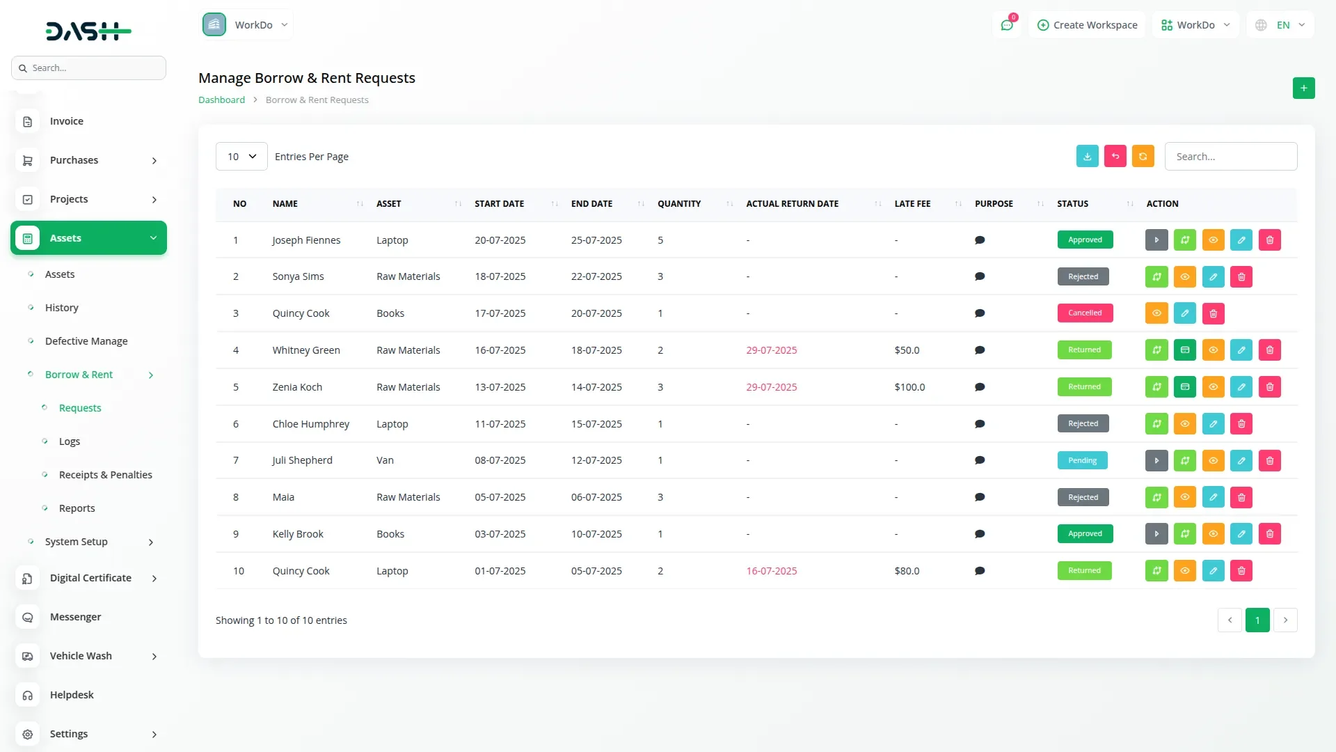 End-to-End Asset Borrowing and Rental Management