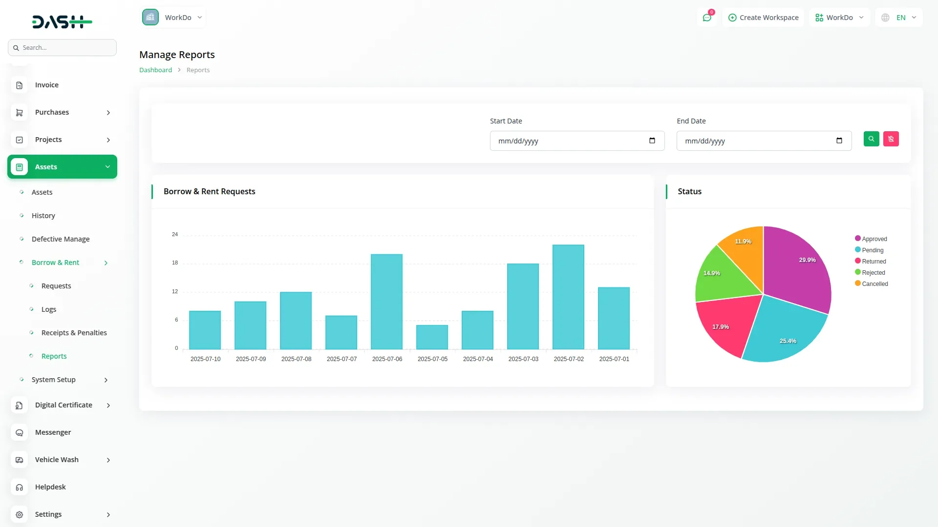 Asset Borrow & Rent – Dash SaaS Add-On is a powerful module designed to help businesses easily manage, track, and monetize rentable assets within the Dash SaaS ecosystem. This add-on provides a complete asset booking, borrowing, rental, and return management system, making it ideal for companies that rent equipment, tools, electronics, vehicles, furniture, or any inventory-based service.