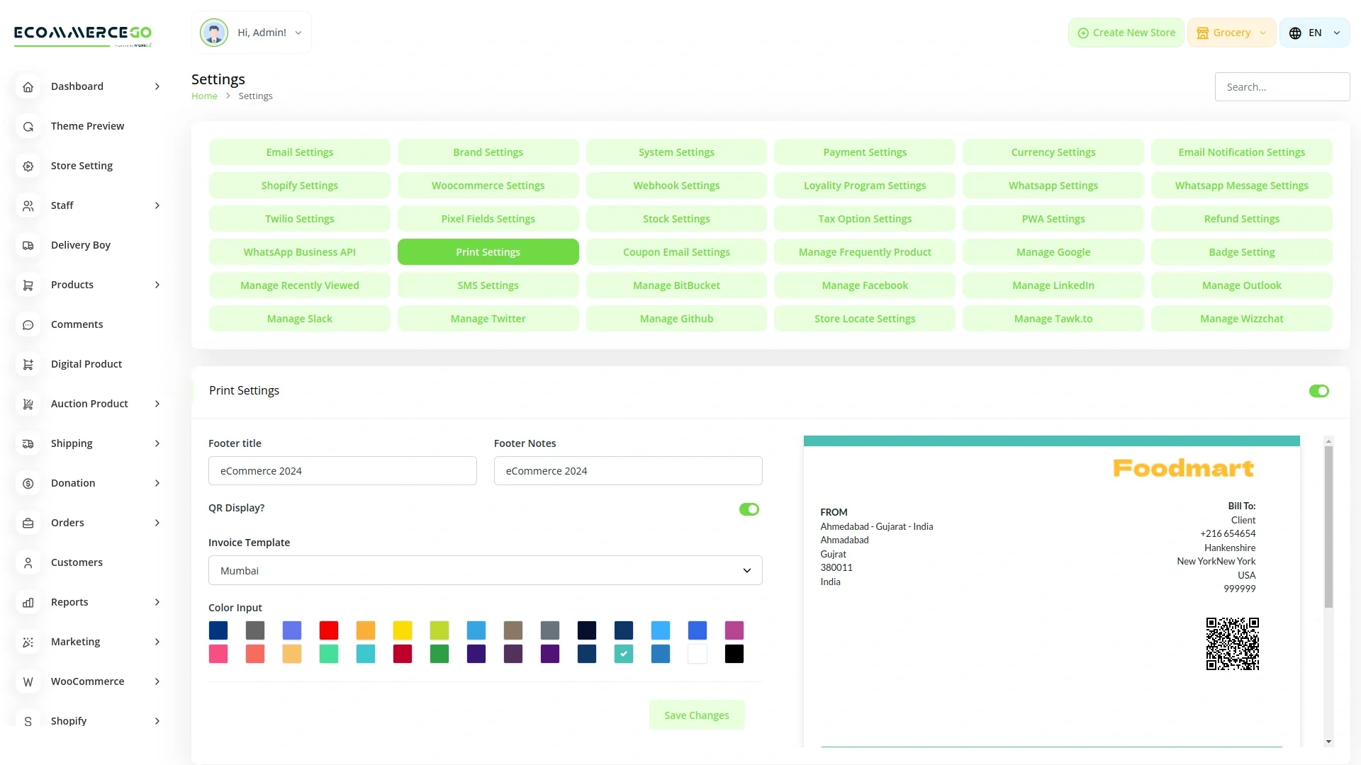 The Automatic Order Printing Module of eCommerceGo SaaS allows you to create invoices that are as unique as your brand. With a wide selection of templates and color schemes, you can design invoices that reflect your brands identity and enhance the customer experience. This customization extends to adding your logo and other brand elements, ensuring every invoice reinforces your brand image. The flexibility to choose and modify designs means your invoices can range from simple and clean to detailed and vibrant, catering to different customer preferences.