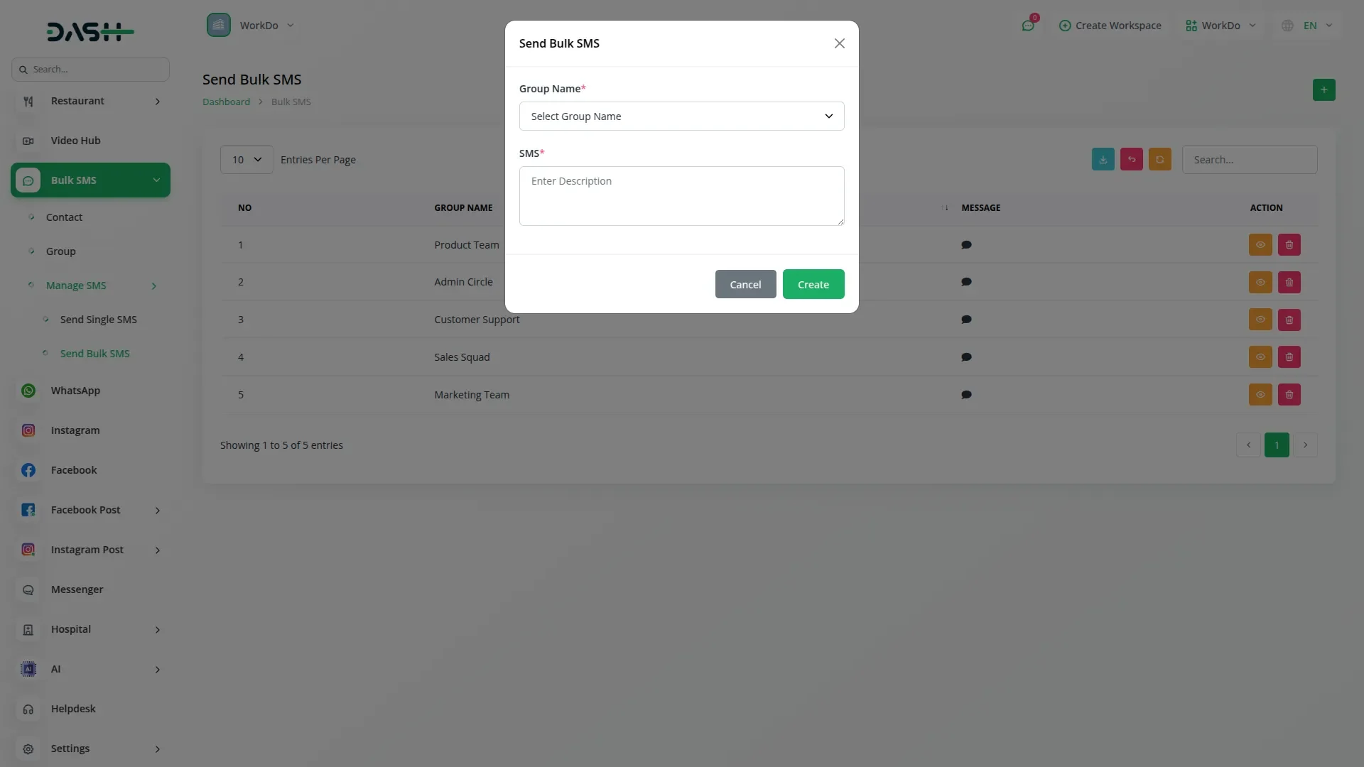 The Bulk SMS – Dash SaaS Add-On empowers your platform with robust bulk messaging capabilities, enabling users to send mass SMS campaigns, alerts, and announcements to thousands of recipients instantly. Perfect for marketing, reminders, or notifications, this add-on supports integration with various SMS gateways and includes features like message templates, delivery tracking, and audience segmentation—all from within the Dash SaaS dashboard.