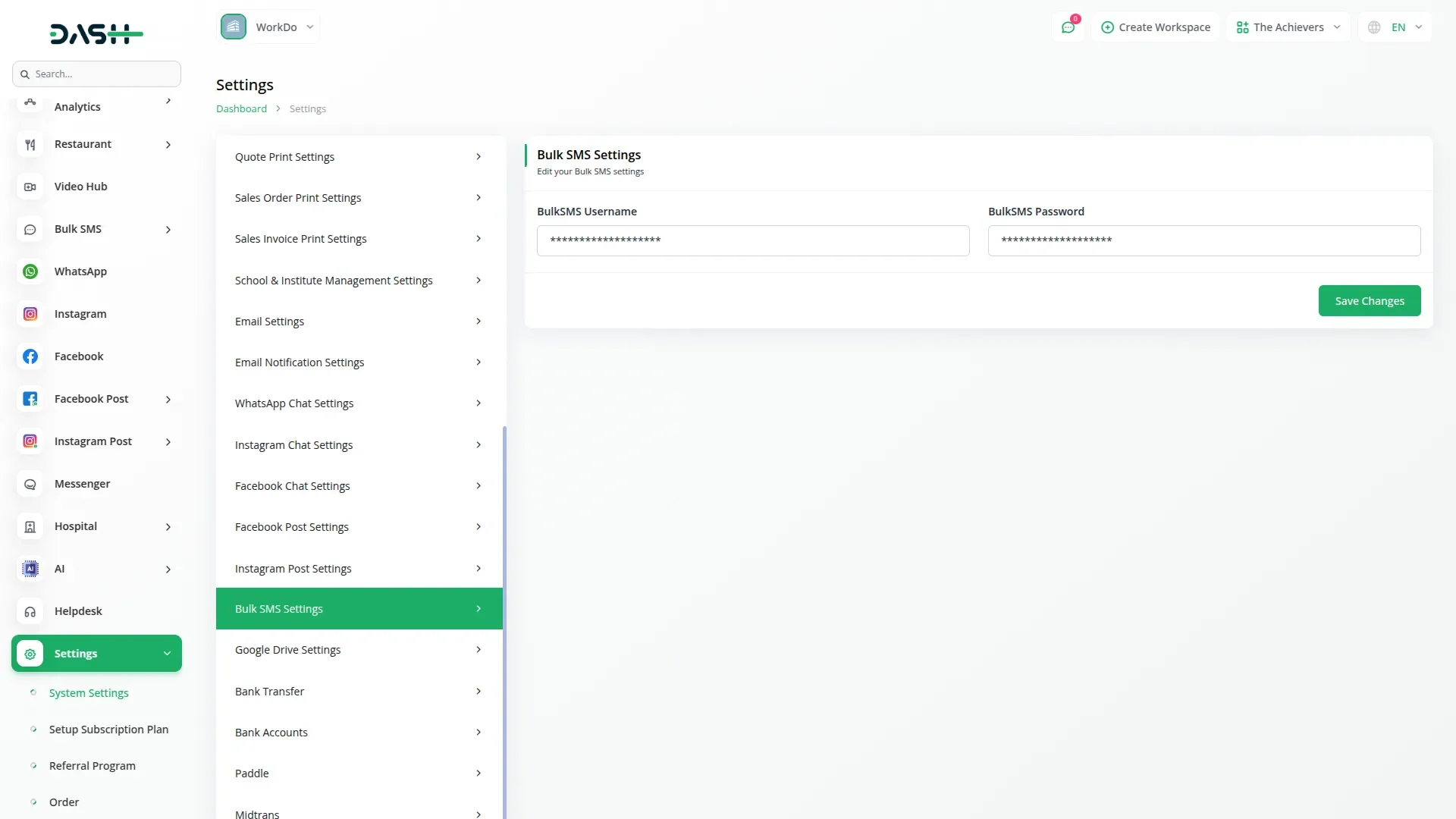 The Bulk SMS Add-On makes it incredibly easy to connect your system with your SMS service. With just a few details like username and password, you're ready to start sending messages directly from your platform. No complicated setup, no delays, just quick and smooth activation. This helps your business stay connected with employees, clients, or leads without stepping outside your dashboard.