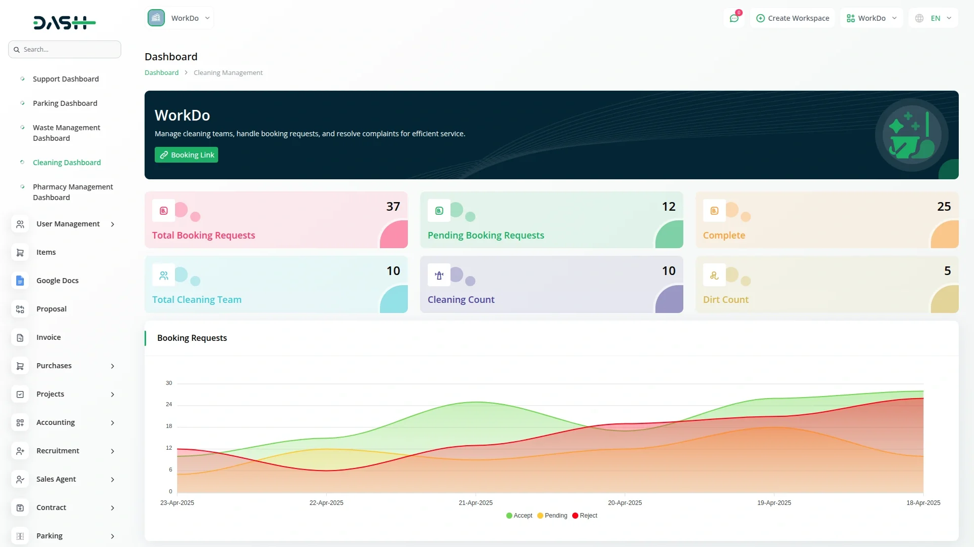 Cleaning Management – Dash SaaS Add-On is a powerful solution designed to streamline operations for cleaning businesses. From scheduling jobs and assigning cleaners to tracking tasks and managing customer requests, this add-on enhances overall service efficiency. With real-time notifications, job status updates, and integrated invoicing, it empowers cleaning companies to deliver top-notch services with minimal manual effort. Ideal for residential, commercial, and industrial cleaning operations, this add-on ensures better time management, resource allocation, and customer satisfaction.