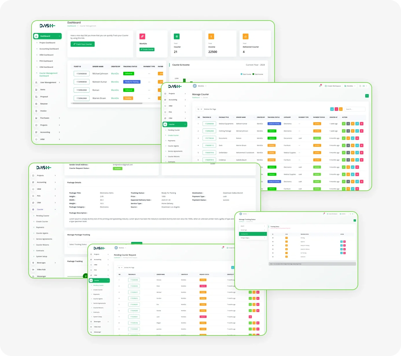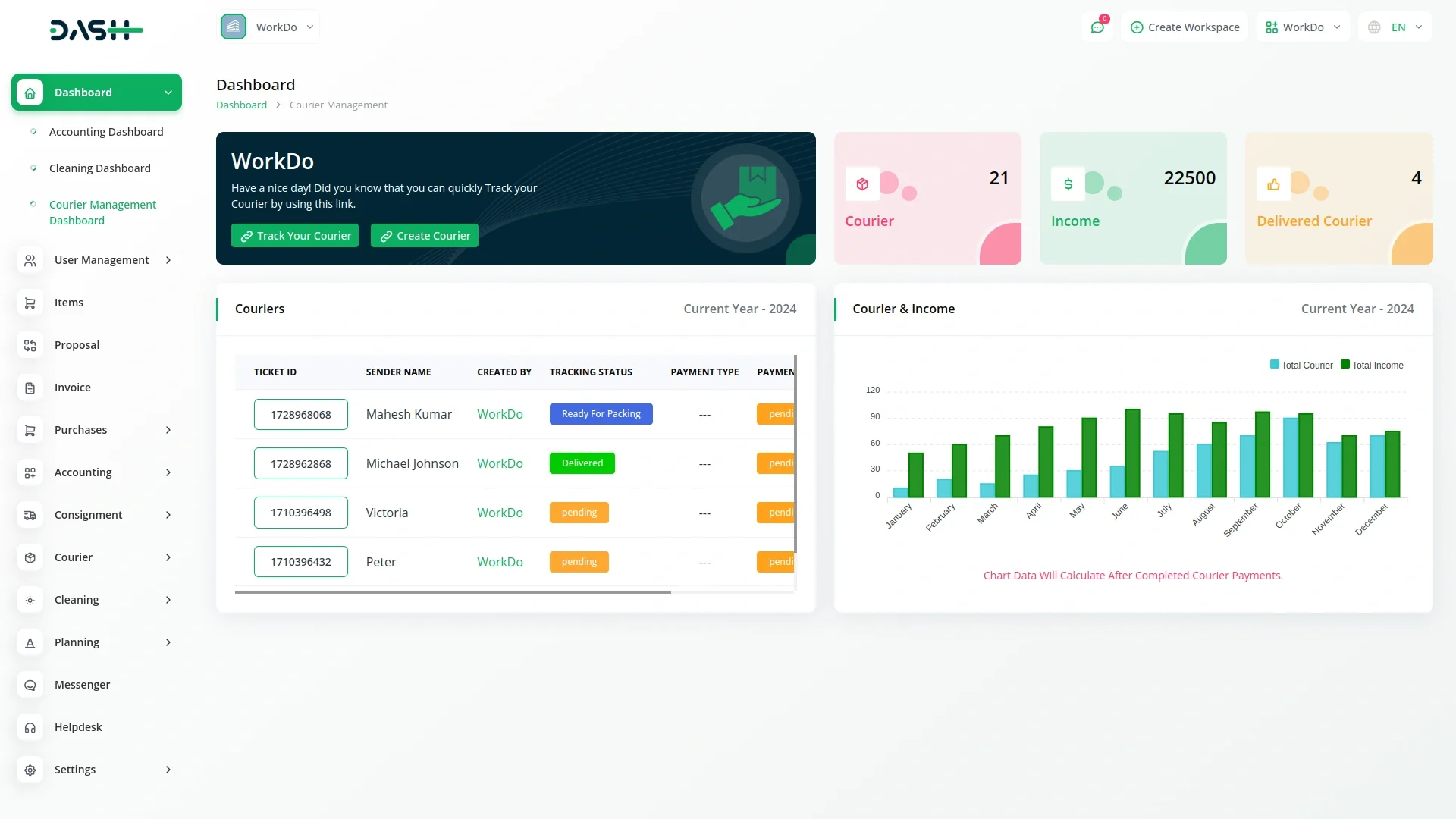 Courier Management – Dash SaaS Add-On.Efficiently manage delivery operations with the Courier Management – Dash SaaS Add-On. This robust solution supports real-time parcel tracking, delivery scheduling, route optimization, staff assignment, and customer notifications. Designed for courier services, logistics companies, and eCommerce platforms, this courier management software ensures faster deliveries, reduced errors, and better customer service—all integrated with the Dash SaaS ecosystem.