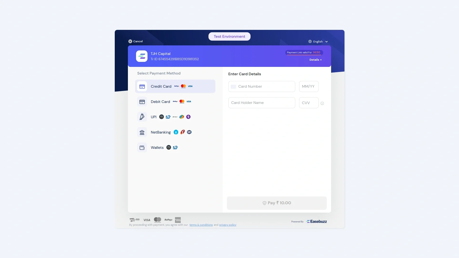 API Key Settings Page for Easebuzz Integration