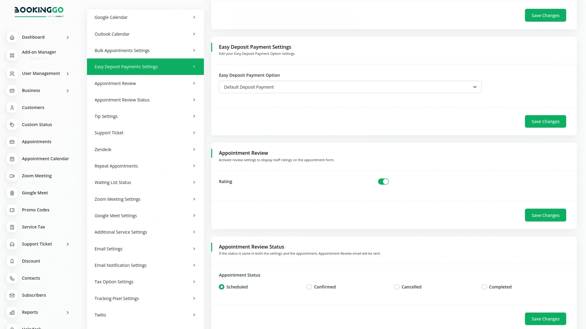 Check here : How to Set Up Deposit Payments Module | BookingGo SaaS
