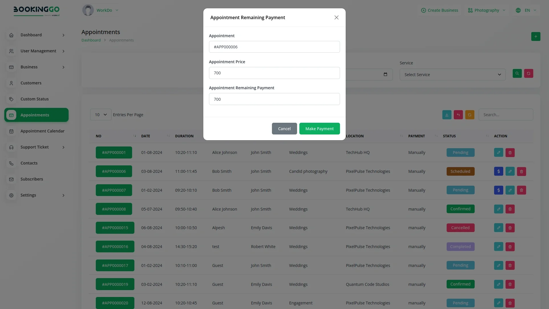 Note: This is an addon for WorkDo BookingGo SaaS - Multi Business Appointment Booking and Scheduling, not a standalone script.