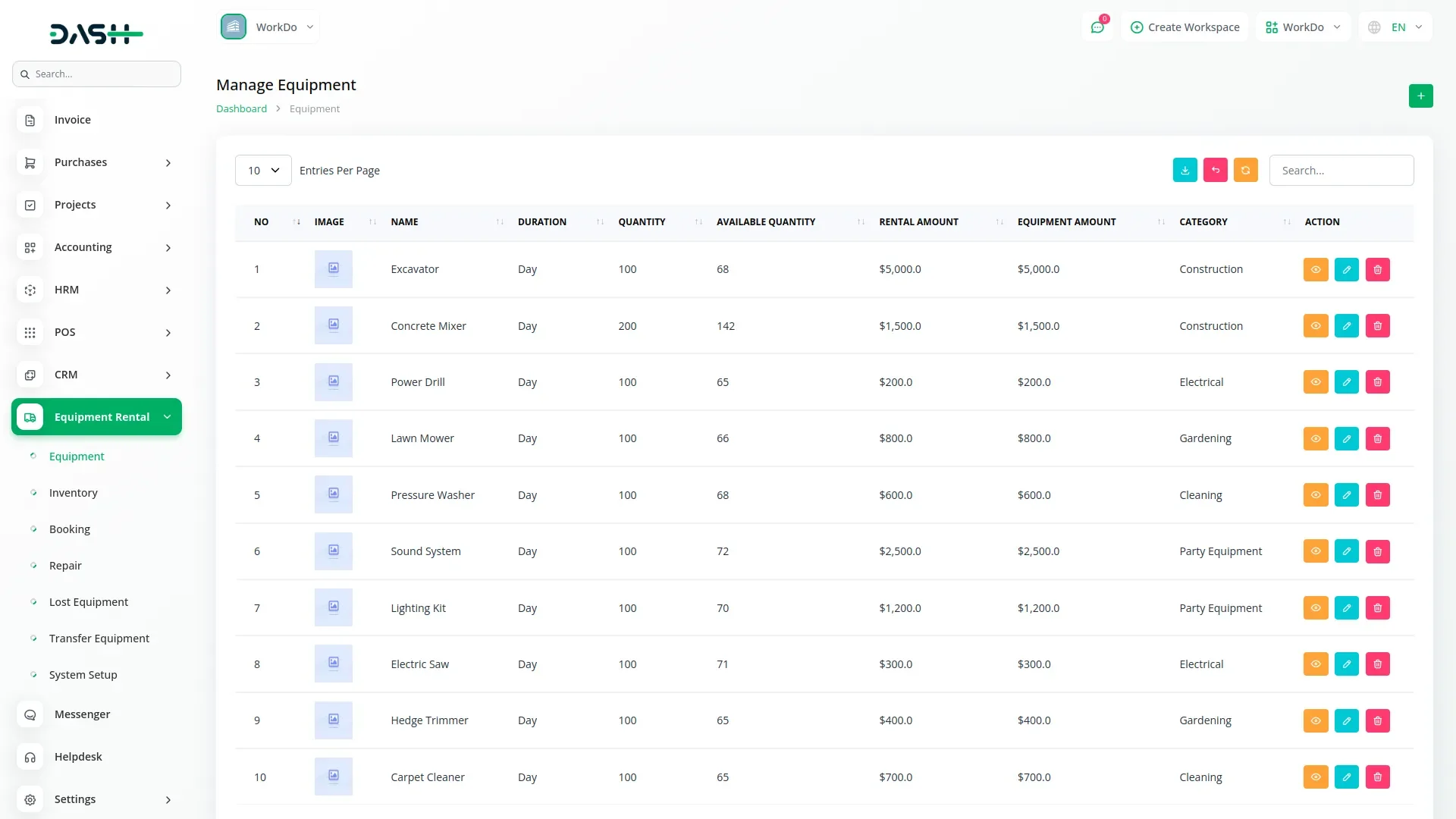 Equipment Rental – Dash SaaS Add-On is a robust solution designed to help rental businesses efficiently manage their equipment, bookings, clients, and payments. Whether you're renting out construction tools, audio-visual gear, party supplies, or machinery, this add-on handles it all—offering real-time availability tracking, rental duration management, maintenance logs, and invoicing. Automate the rental process with digital agreements, inventory alerts, damage reports, and flexible pricing structures to maximize operational efficiency and customer satisfaction.