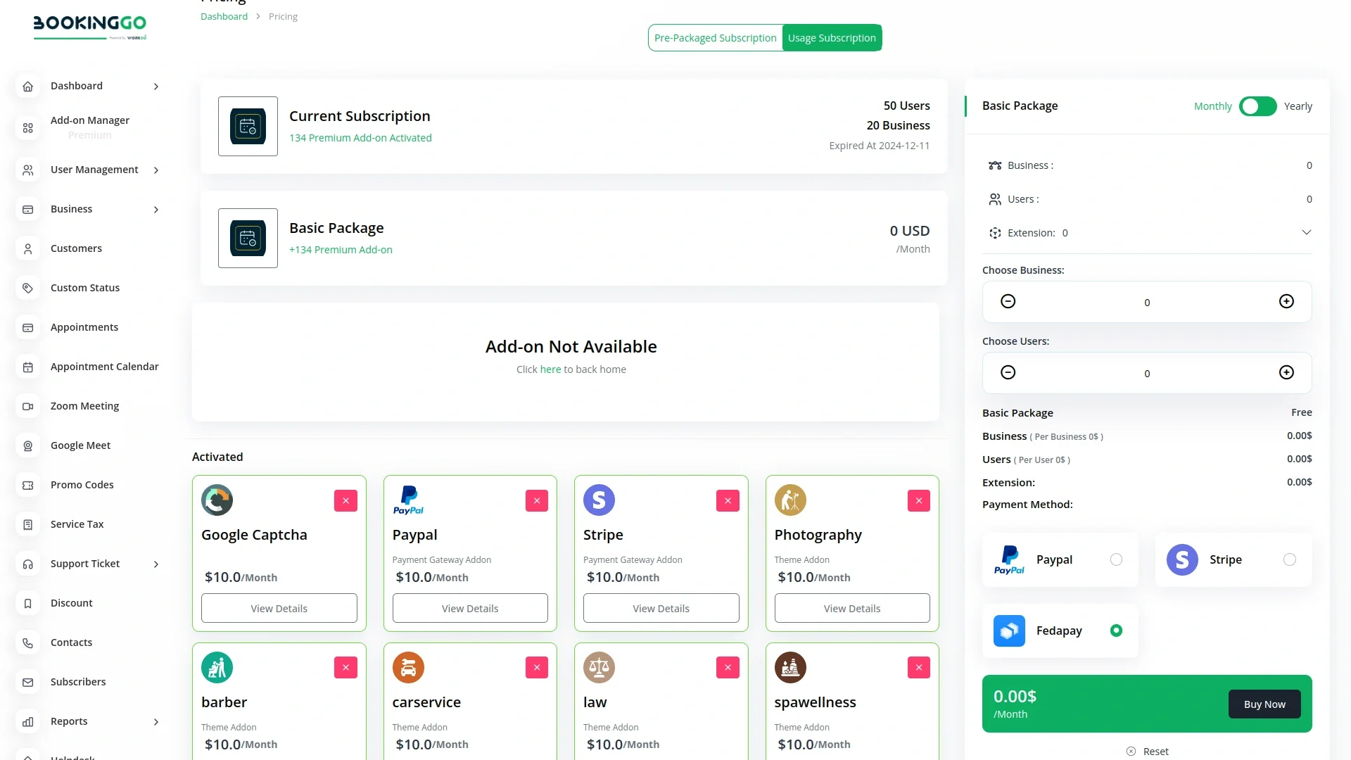 Integrate Fedapay with your BookingGo SaaS platform to accept payments securely in supported African countries. With this add‑on, both Superadmins and Company accounts can configure API credentials, enabling payments for appointments (advance or full) and subscription‑based plans. Ideal for businesses operating in the WAEMU region or Guinea, this integration offers multi‑method payment support, robust security, seamless flow, and predictable recurring billing. Includes 6 months of support, free lifetime updates, and a satisfaction guarantee.