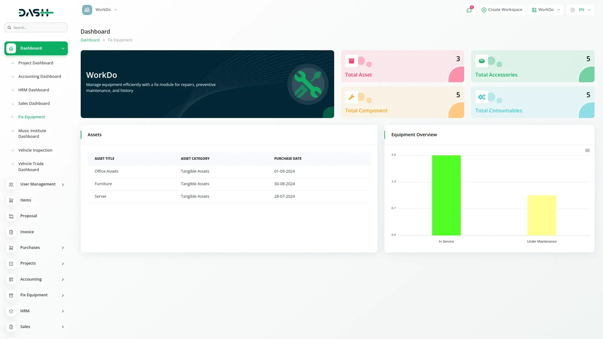 Fix Equipment – Dash SaaS Add-On.Efficiently manage equipment repair and maintenance tasks with the Fix Equipment – Dash SaaS Add-On. This powerful tool allows businesses to log repair requests, assign technicians, track repair status, and maintain service history for all equipment. Ideal for industries relying on heavy machinery or office assets, this equipment maintenance management system helps reduce downtime, improve asset lifespan, and streamline repair workflows within the Dash SaaS platform.