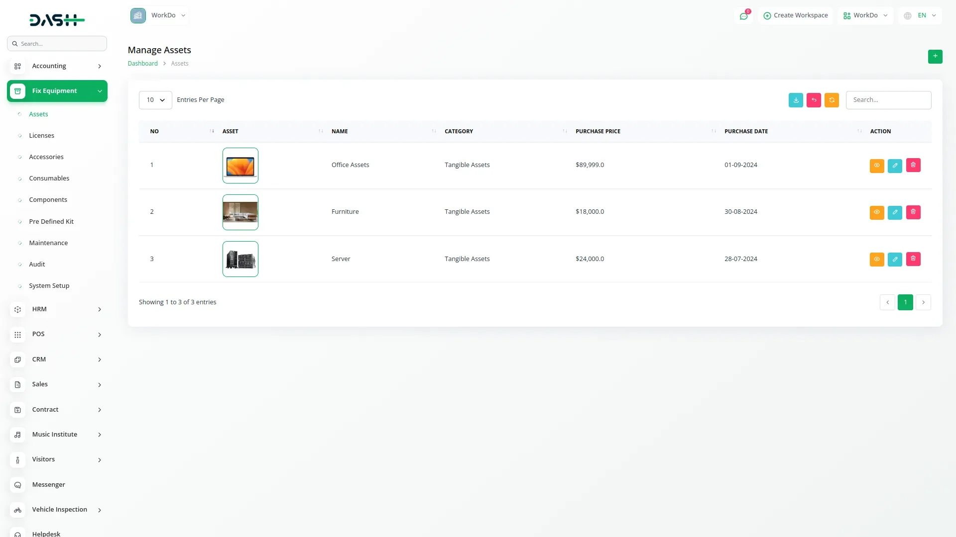 This Fixed Asset Management System offers a complete solution to organize, track, and maintain your organization’s assets. It covers everything including asset registration, location tracking, license management, category and status assignment, accessories, consumables, and maintenance history. Assets can also be grouped into components or kits, allowing for structured management and easier tracking across departments or locations.
