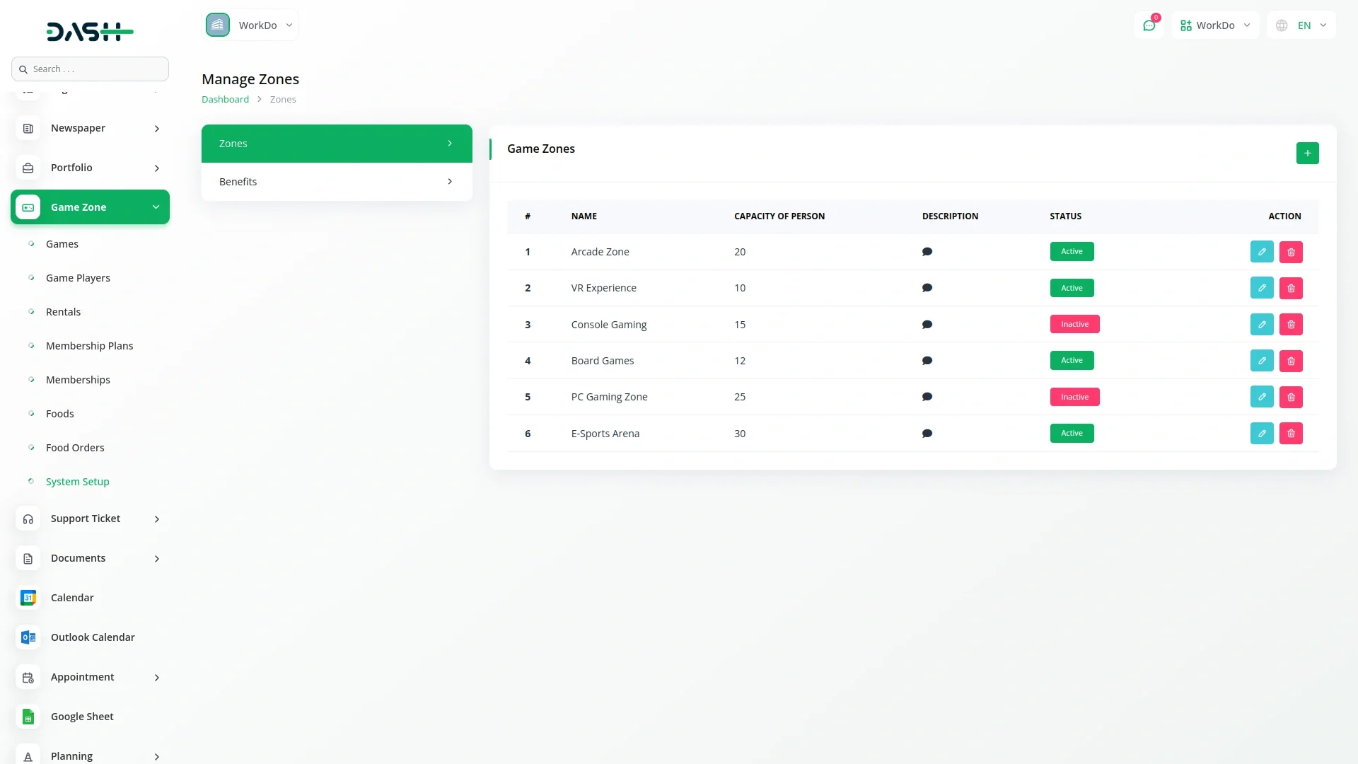 Game Zone – Dash SaaS Add-On is a powerful solution designed to manage gaming centers, arcades, and entertainment zones. It includes features like session booking, customer registration, game machine tracking, time and usage monitoring, and billing management. Fully integrated with Dash SaaS, this add-on streamlines day-to-day operations, enhances user experience, and helps gaming businesses manage resources, staff, and players efficiently.