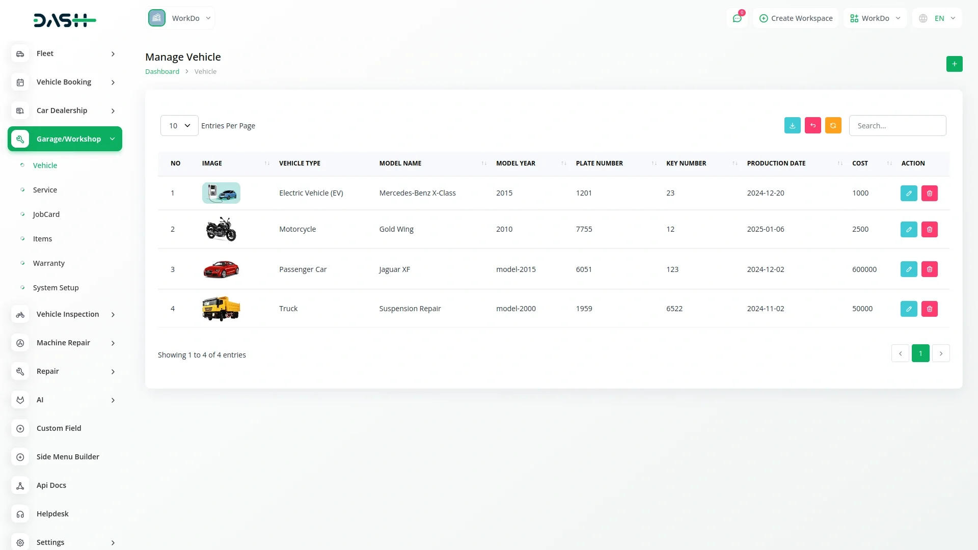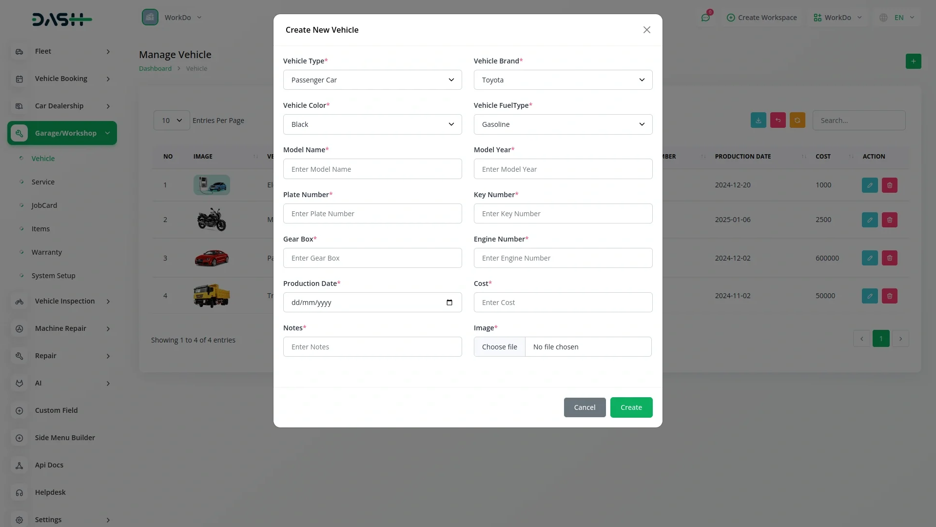 Garage Workshop Management – Dash SaaS Add-On.Optimize your auto repair business with the Garage Workshop Management – Dash SaaS Add-On. Tailored for garages and vehicle service centers, this powerful tool helps manage job cards, service appointments, vehicle diagnostics, parts inventory, billing, and technician assignments—all from one intuitive dashboard. Seamlessly integrated with Dash SaaS, this garage management system streamlines workshop operations, improves efficiency, and enhances customer satisfaction.