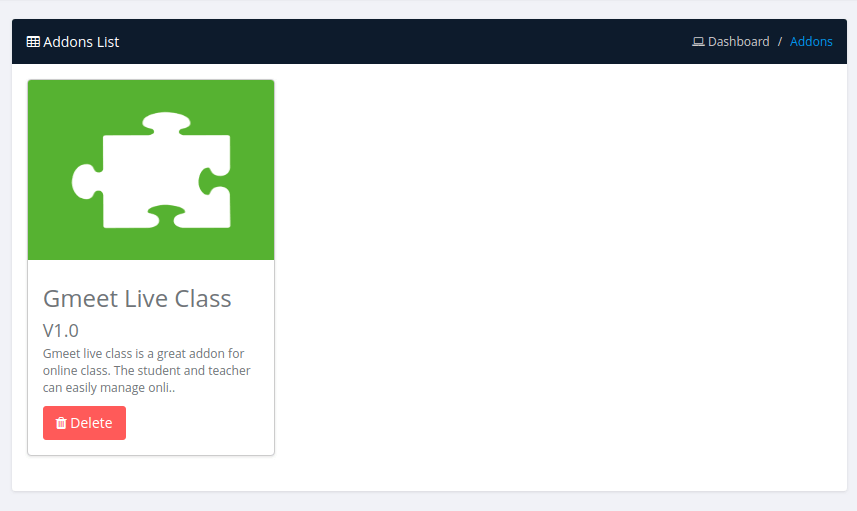 - Admin, teacher, students & users can create and join Live class & staff meeting - Students & Other meeting members can join the live class session & meeting session from their panel as per schedule - No meeting id or password needed - Secure session access directly from the panel - Use Free google meet account to manage class and meetings - Create meetings directly from the school admin panel