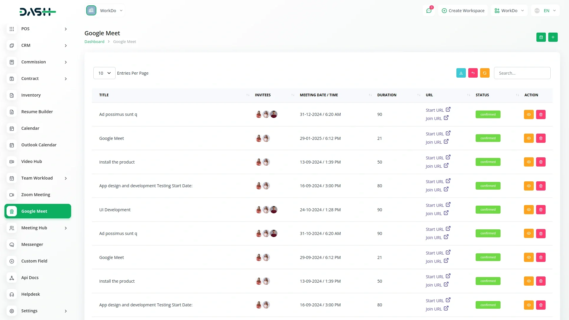 Empowering Collaboration: Google Meet Integration, Streamlined Meeting Management, and Customizable Settings in Workdo-Dash