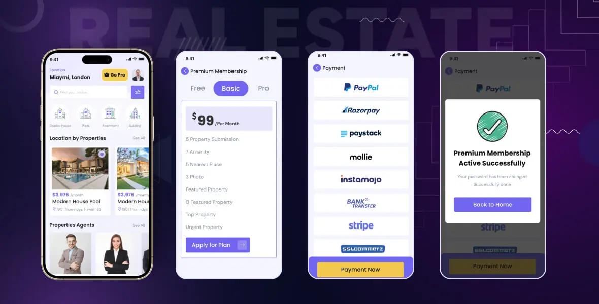 Homeco – Real Estate Directory listing Flutter App PAYMENT METHODS: