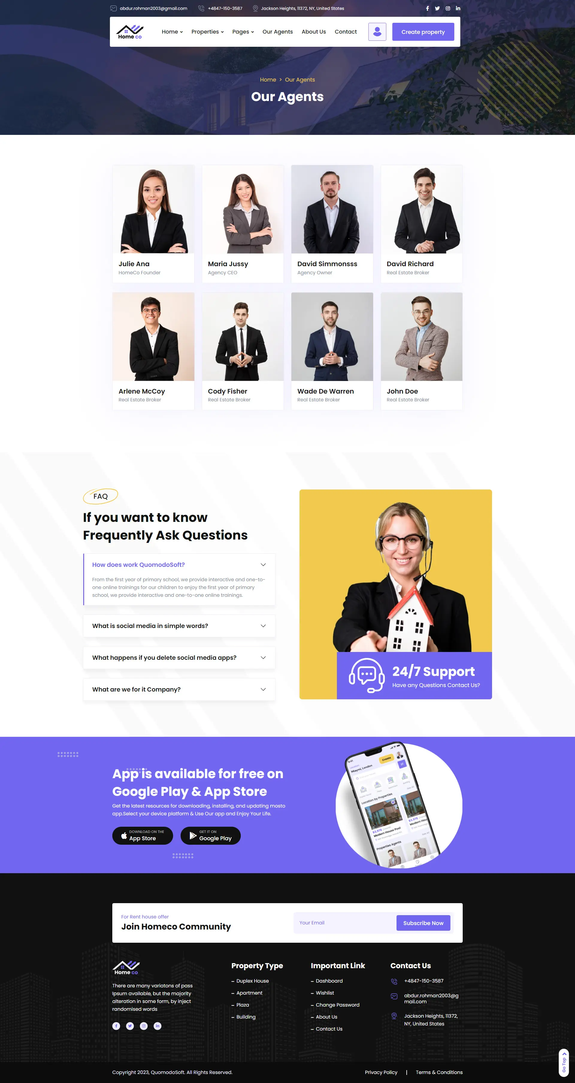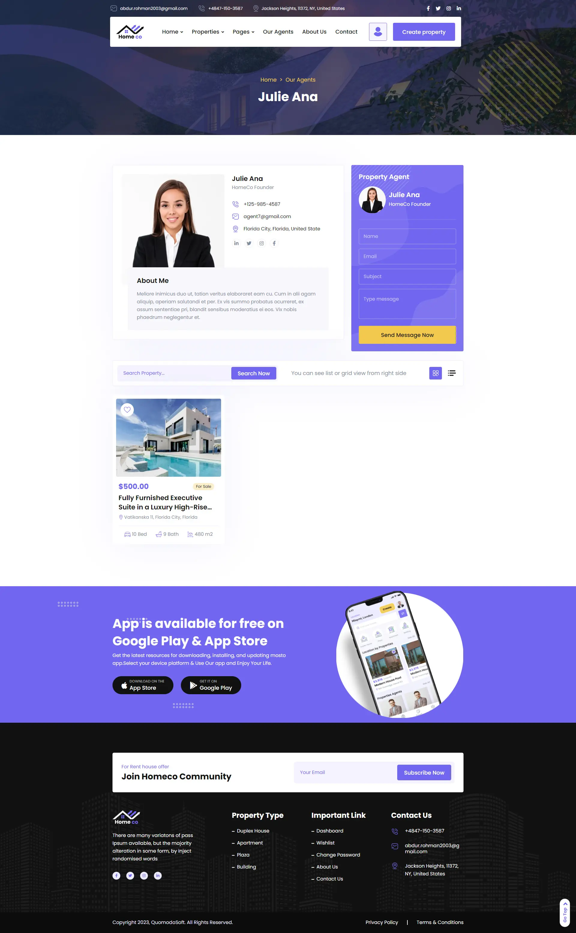 Homeco – Real Estate Directory Listing Laravel Script User/Agent Features