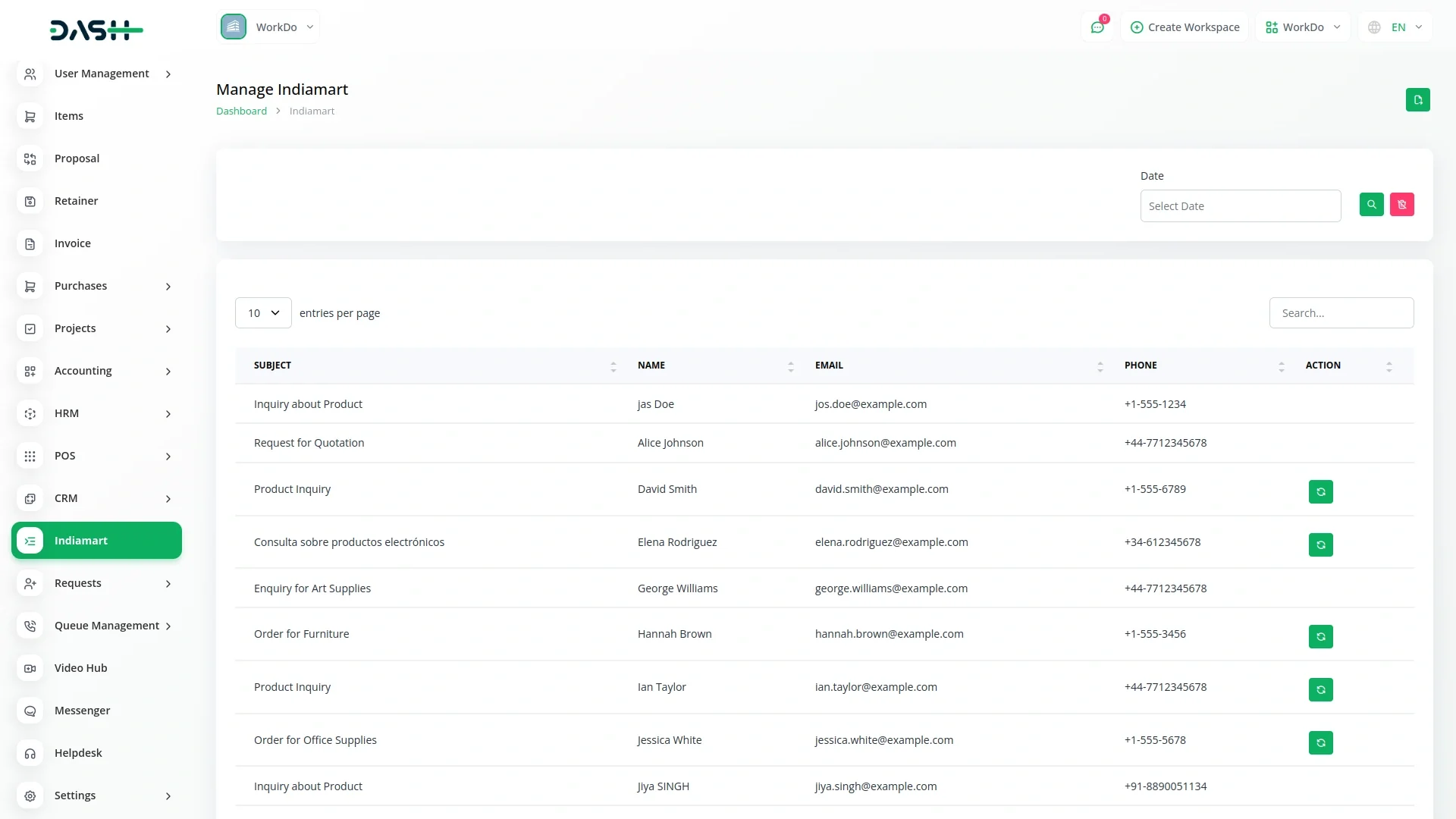 Indiamart – Dash SaaS Add-On enables seamless integration of your Dash SaaS platform with the Indiamart B2B marketplace. Easily sync product listings, receive inquiries, manage leads, and automate responses directly from your dashboard. This add-on uses Indiamart's API to streamline communication and lead management, allowing businesses to respond faster, improve conversion rates, and reduce manual work. Ideal for businesses looking to centralize their operations while expanding their reach through Indiamart.