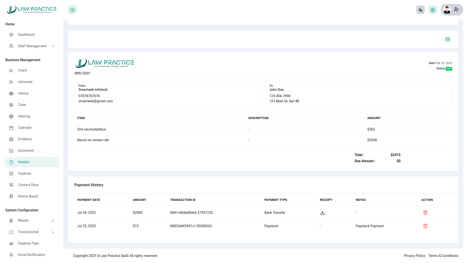 Law Practice SaaS – Legal Advocate & Counsel Manager is a comprehensive, cloud-based platform designed to streamline case management, client intake, legal workflow automation, and document handling for law firms, advocates, and legal consultants. The system centralizes all core operations, including matter management, court date scheduling, client communication, billing & invoicing, document drafting, digital case files, time tracking, and task workflows. With secure data storage, role-based access control, and integrated legal templates, Law Practice SaaS enhances productivity, reduces administrative burden, and improves client service delivery. Ideal for solo attorneys, law firms, legal departments, and consultancy chambers seeking a scalable and efficient legal management solution.