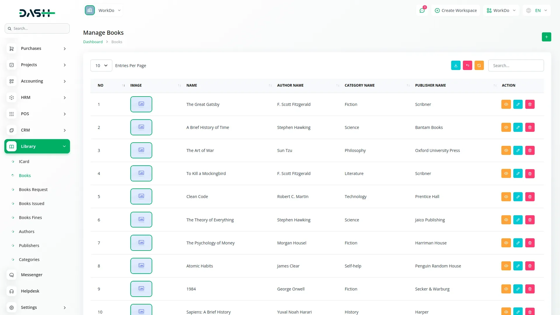 Library Management – Dash SaaS Add-On is a feature-rich solution built to simplify the daily operations of libraries—whether academic, public, or private. This add-on enables efficient cataloging, member management, book lending and returns, overdue tracking, and digital inventory updates. Integrated with barcode/QR scanning, fine calculation, and reservation capabilities, it helps automate the entire lifecycle of book circulation and enhances the overall experience for both librarians and members. Ideal for schools, colleges, universities, and community libraries.