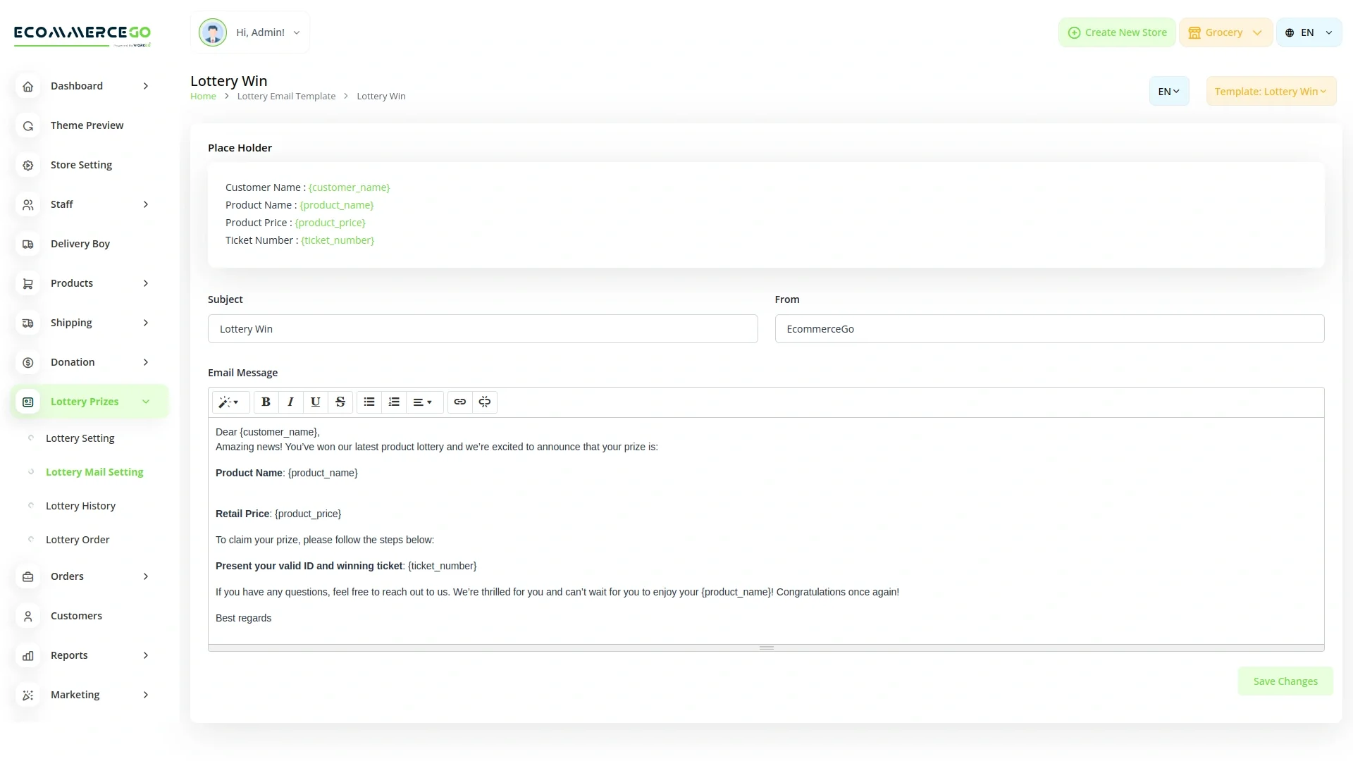 Gamify your store and keep customers coming back with the Lottery Prizes Add-On by eCommerceGo. This powerful feature allows you to create lottery-style prize draws, giving shoppers the chance to win exciting rewards such as discounts, coupons, vouchers, or free products. Perfect for boosting engagement, increasing repeat purchases, and making your promotions more interactive.