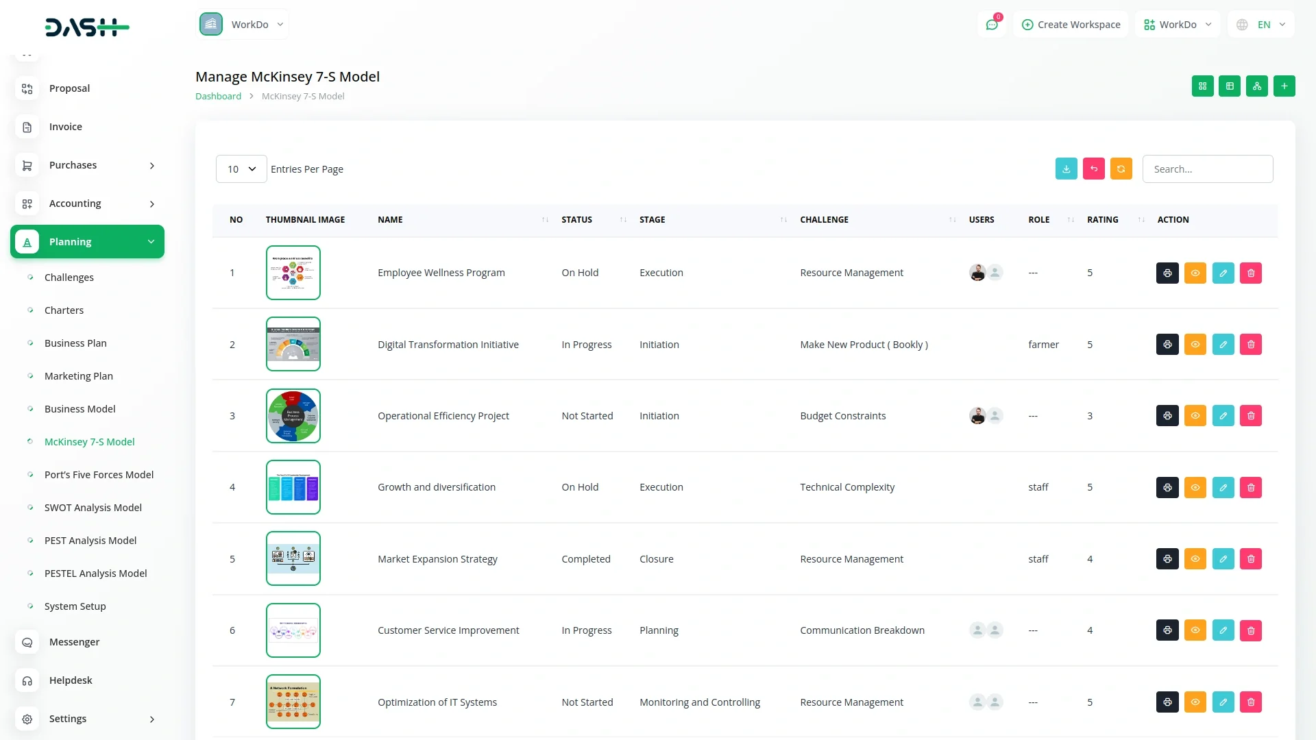 Visualize and manage your McKinsey 7-S models effortlessly using an interactive Kanban board. Organize models by stages, track progress with real-time counts, and quickly adjust strategies with drag-and-drop functionality. With the ability to view, print, and edit each model on the fly, That Empowers teams to keep structure and systems aligned with strategic goals all in one streamlined view.
