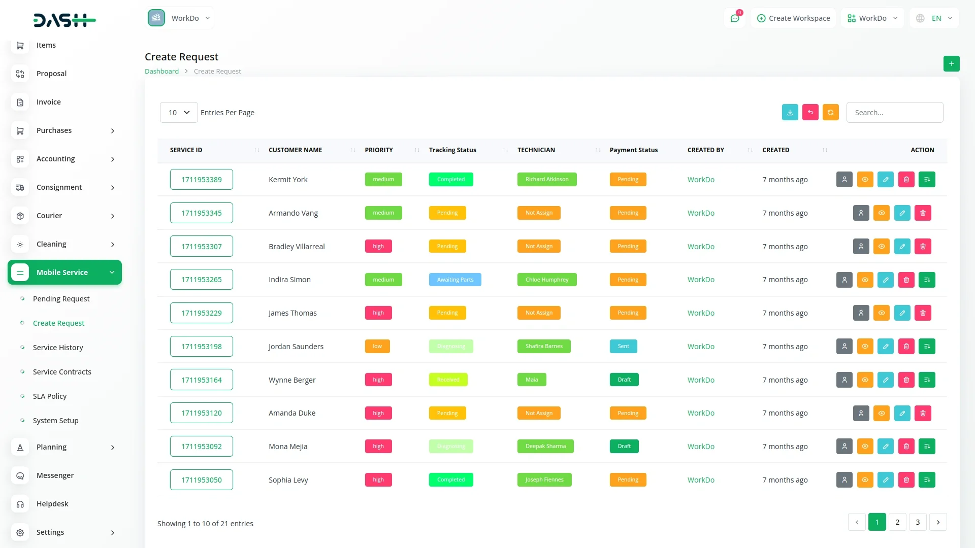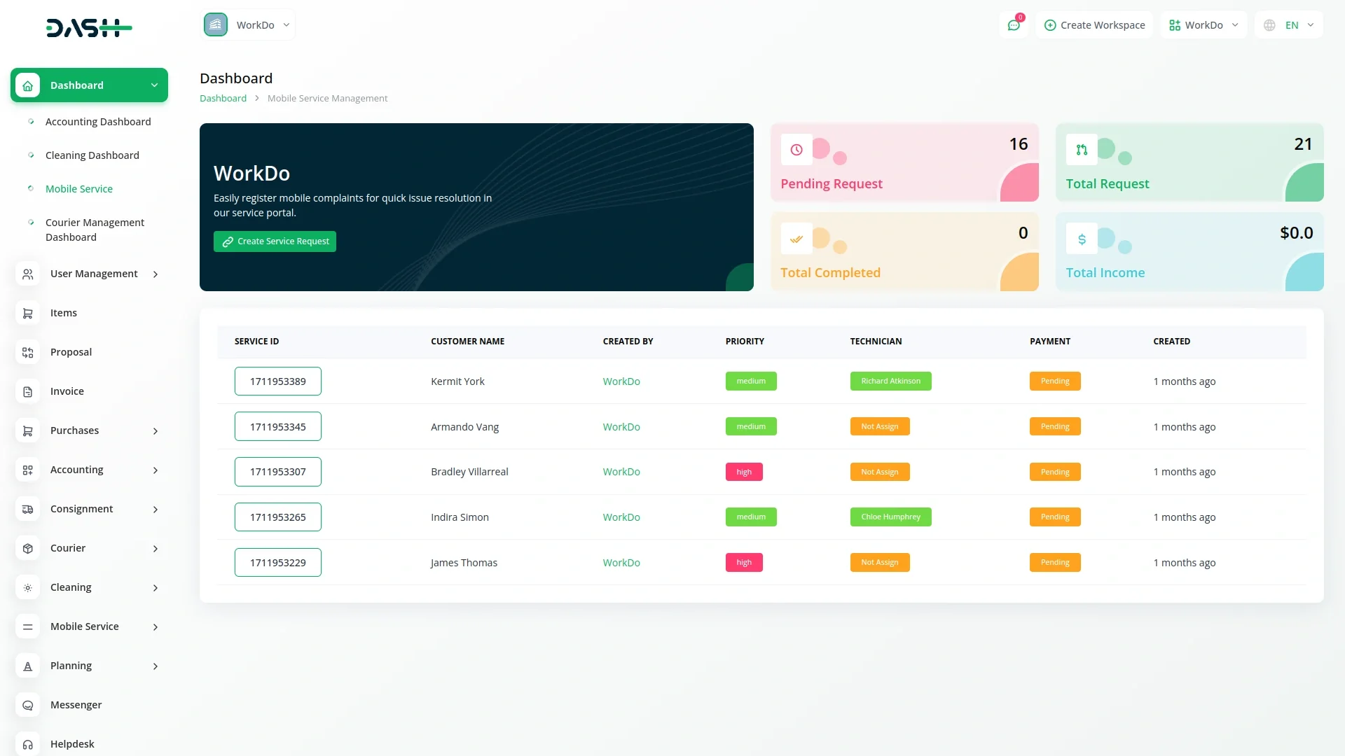 Enhance and streamline your mobile service operations with Mobile Service Management Integration. This powerful Add-On allows businesses to efficiently handle customer service requests from submission to resolution—all from a single, mobile-friendly platform. Admins can approve or reject requests, assign technicians, track spare parts inventory, generate invoices, and manage secure payments with ease.