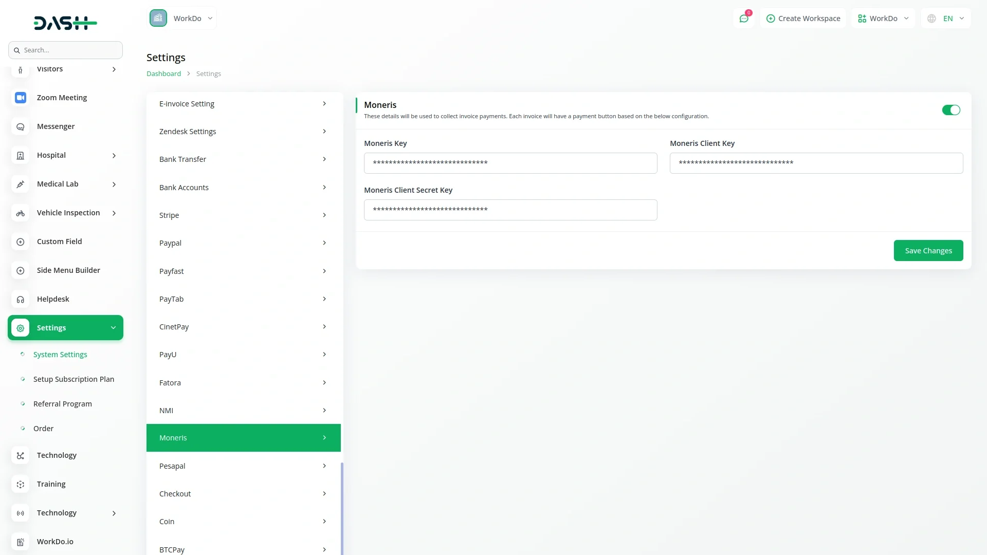Check here : Moneris Integration in Dash SaaS | Simple & Secure Payments