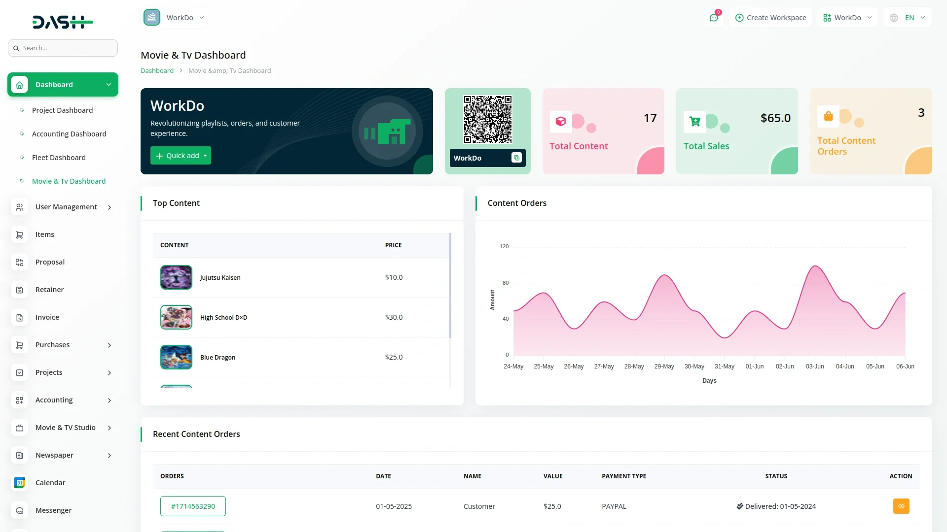 Movie & TV Studio centralizes order management, letting you create custom orders and display all website purchases. This provides a comprehensive overview of sales, including payment types and downloadable receipts, streamlining content monetization.