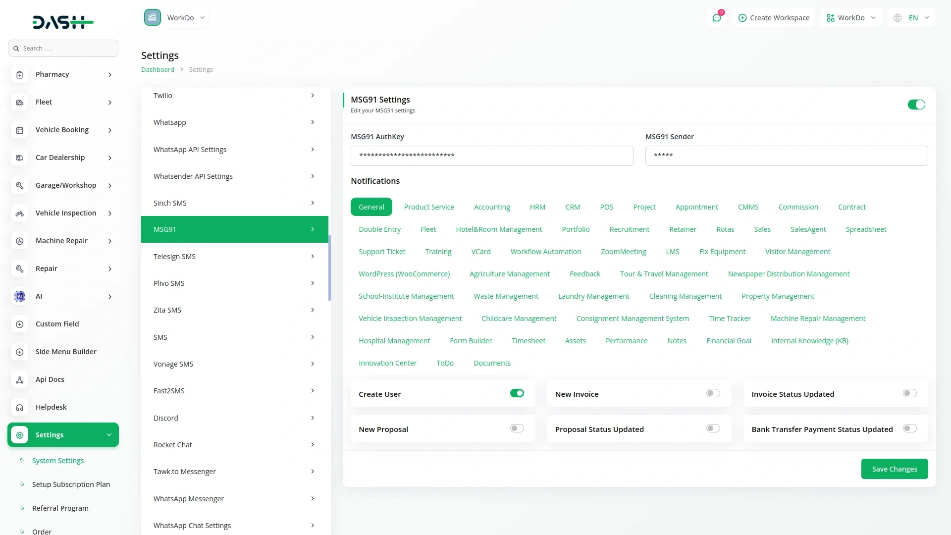 You can receive instant notifications of important updates, notifications, and alerts right in your MSG91 workspace. Stay informed about critical events without missing a beat. You can use MSG91 effectively. First of all, you can add your MSG91 AuthKey and Sender ID in the settings page and then next you can turn on/ off notifications as per your choices.