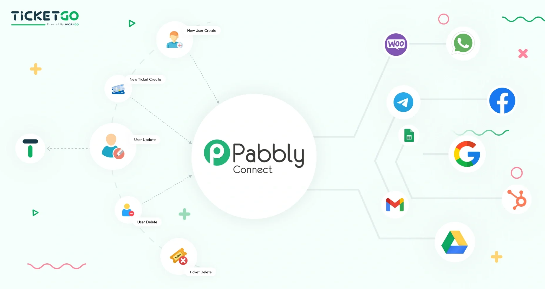 Automation, Integration, Workflow, No-Code, TicketGo, Pabbly Connect, Webhook, Triggers, Actions, Scheduling, Delay, Router, API Integration, Email Parser, Iterator, Multi-App Sync, Workflow Automation, Customer Support, Efficiency, Productivity, Data Sync, CRM, Email Marketing, Slacks, Google Sheets, Helpdesk, Support Ticketing, Business Automation.