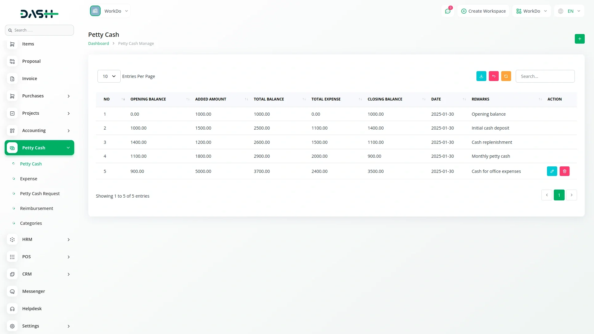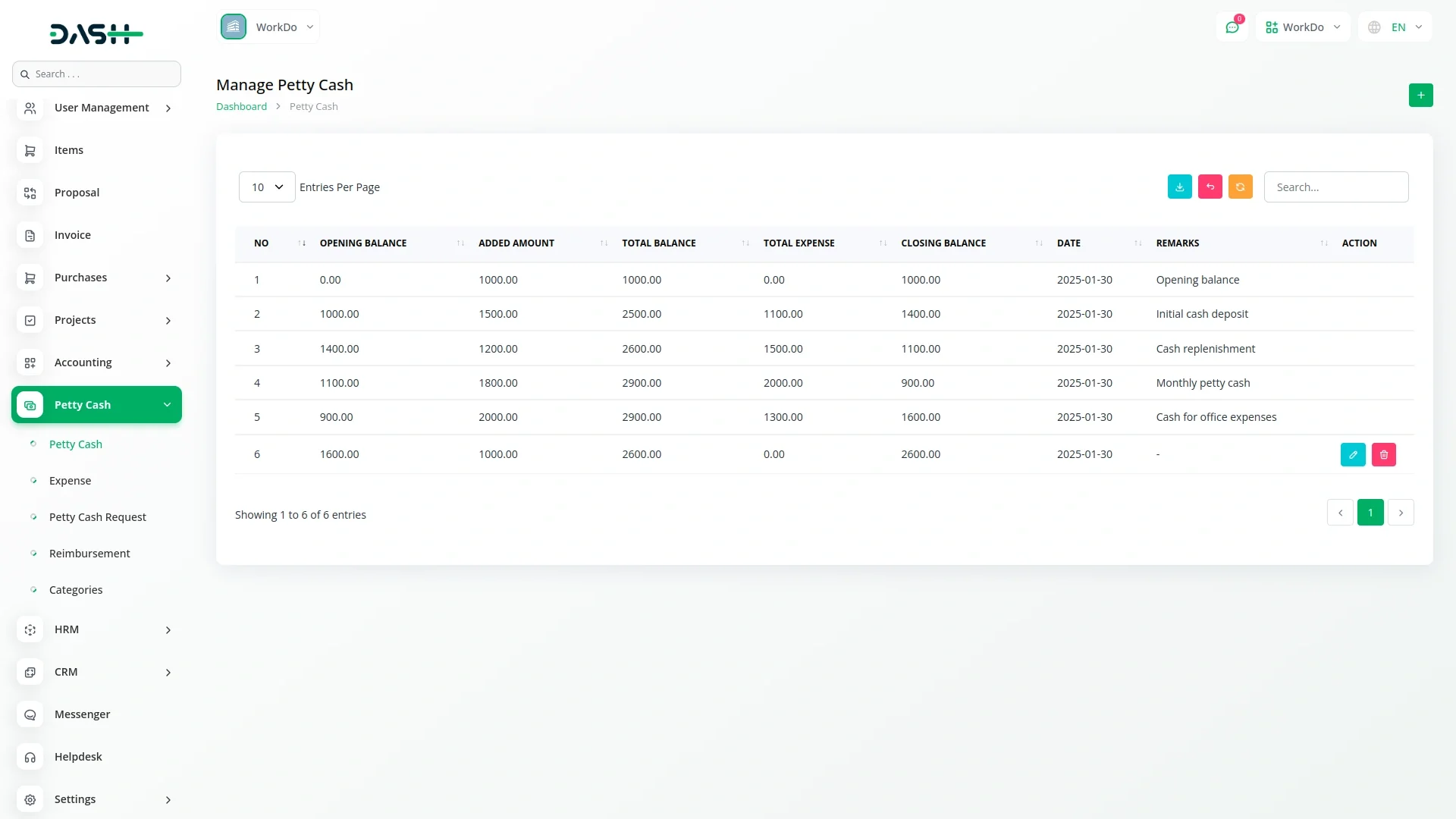 Petty Cash Management – Dash SaaS Add-On.Easily track and control minor business expenses with the Petty Cash Management Add-On for Dash SaaS. This tool simplifies the recording, approval, and reconciliation of petty cash transactions, ensuring transparency and accountability. Ideal for office administrators, finance teams, and SMEs, it helps prevent cash misuse while maintaining accurate records of small expenditures.
