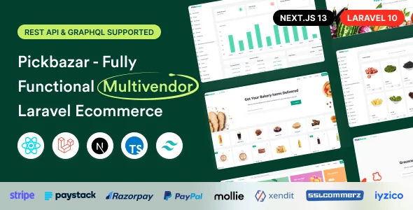 Pickbazar - Multivendor Laravel Ecommerce with React, Next.js, GraphQL & REST API is a feature-rich ecommerce platform designed for modern online marketplaces. Built with Laravel, React, and Next.js, it offers blazing-fast performance, SEO optimization, and scalable architecture. The multivendor functionality allows multiple sellers to manage products, orders, and earnings seamlessly. With GraphQL and REST API integration, it ensures powerful data management and flexibility for mobile and web apps. Perfect for launching fashion, electronics, grocery, or digital product stores, Pickbazar delivers a complete ecommerce solution. Ideal keywords: multivendor ecommerce, Laravel marketplace, React ecommerce template, Next.js shop, GraphQL API ecommerce, REST API store.