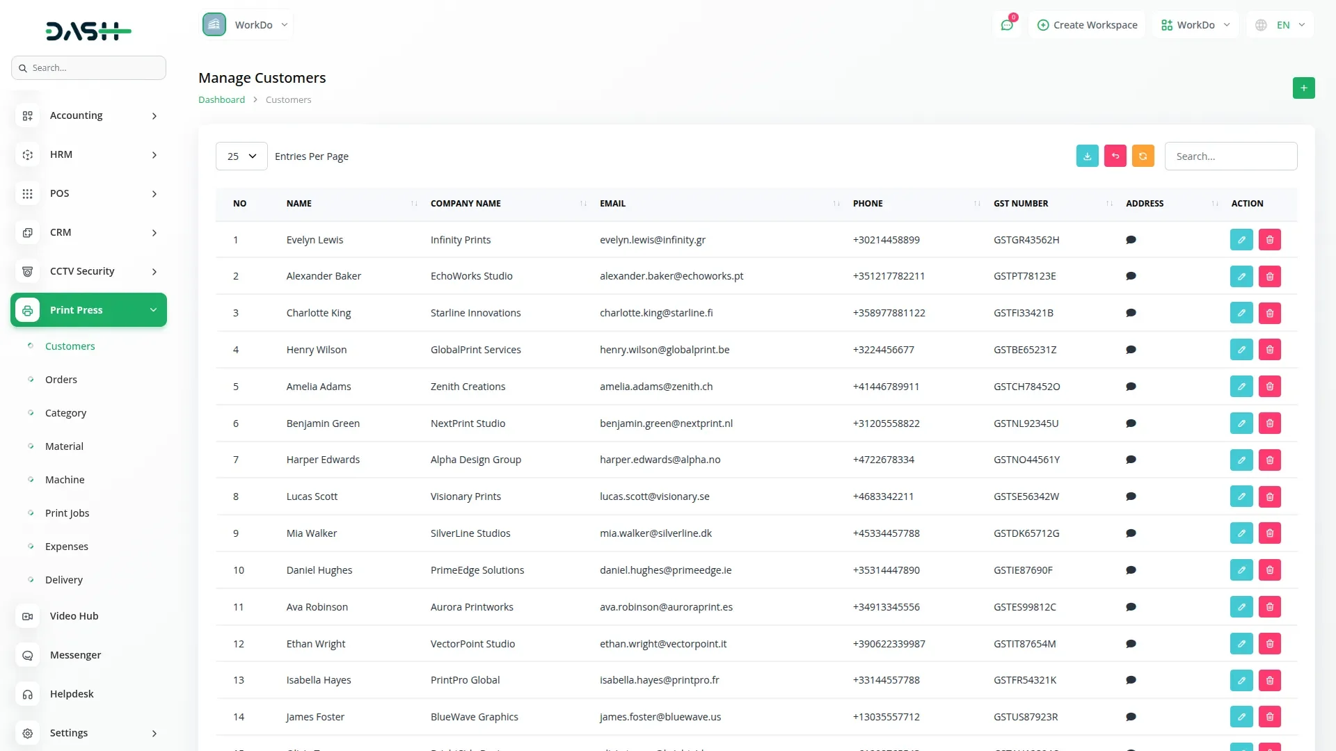 The PrintPress Management – Dash SaaS Add-On is a comprehensive printing workflow and order management module designed for businesses in the printing, signage, publishing, and packaging industries. This powerful add-on allows companies to efficiently manage print jobs, customer orders, production stages, pricing, artwork files, delivery schedules, and job status tracking—all inside the Dash SaaS ecosystem.
