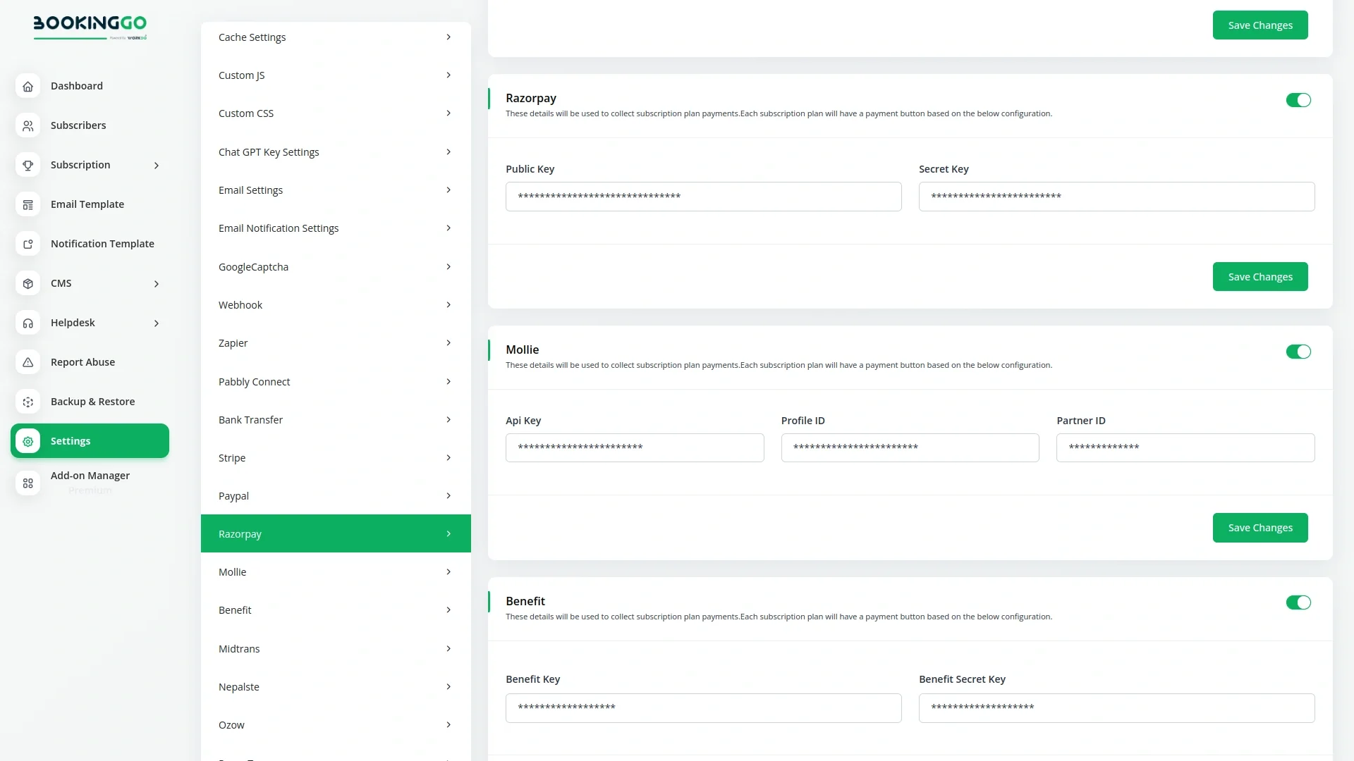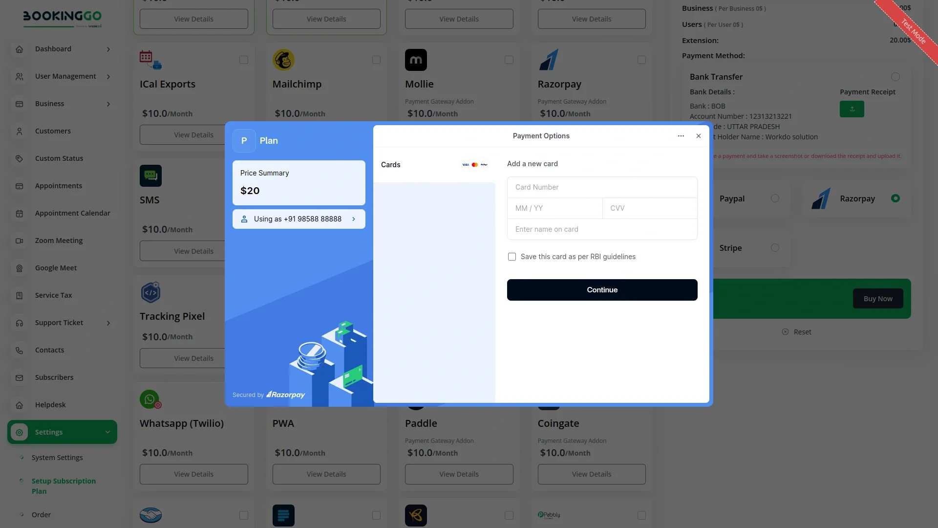 Check here : Integrate Razorpay with BookingGo SaaS | Comprehensive Setup Tutorial