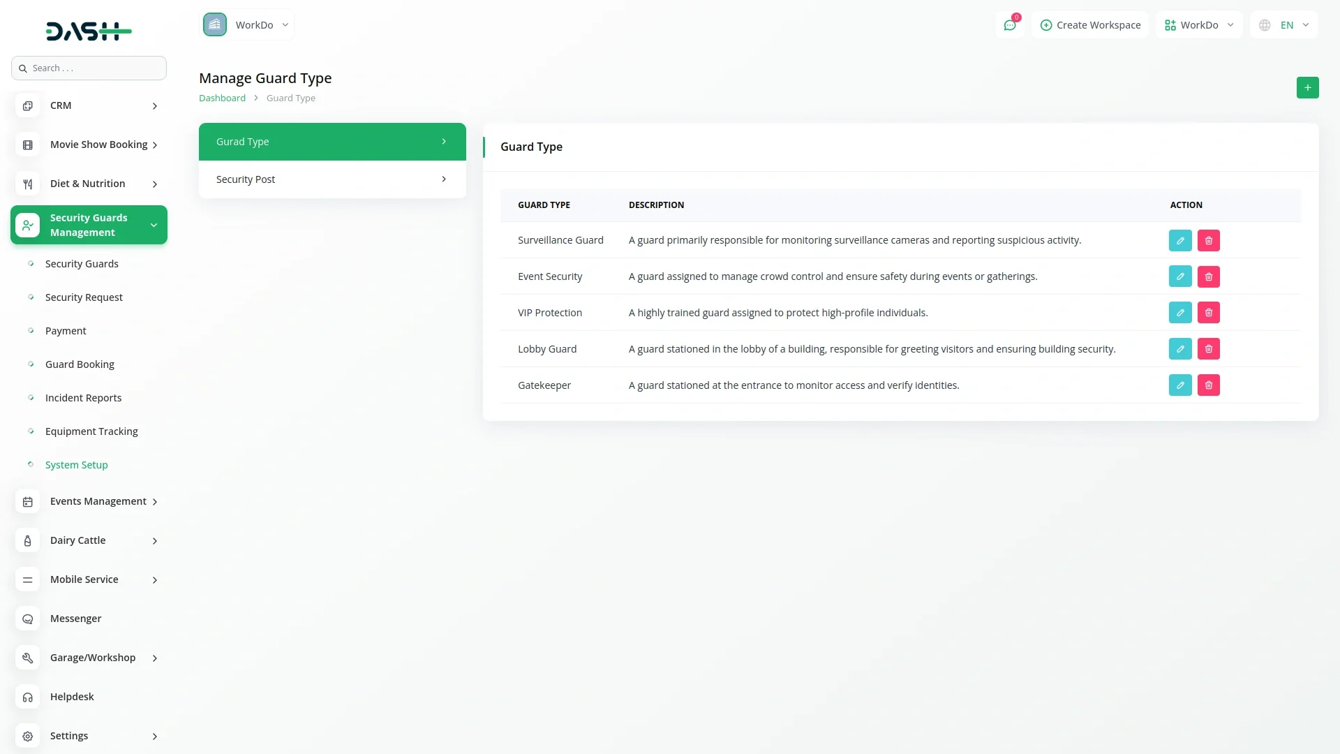 Security Guard Management – Dash SaaS Add-On is a specialized solution for managing security personnel, guard schedules, patrol routes, and incident reports. Designed for security agencies and corporate facilities, this add-on offers real-time tracking, automated shift scheduling, attendance logging, and alert systems. Fully integrated with Dash SaaS, it ensures seamless coordination, improves operational efficiency, and enhances accountability across security teams.