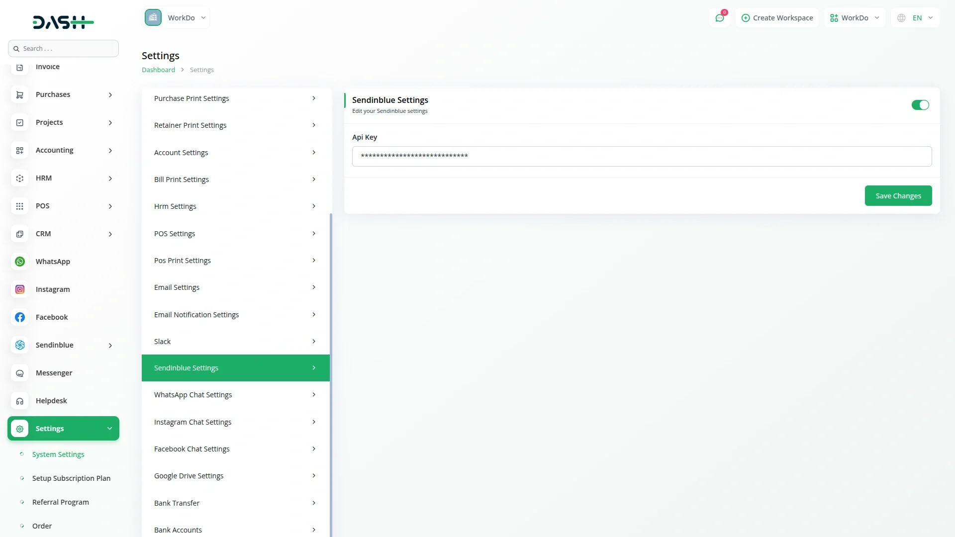 The Sendinblue integration enables businesses to manage their email communication efficiently within Dash SaaS. Users can compose and send newsletters, promotional emails, and transactional messages via Brevo without switching platforms. With easy API key configuration, businesses can automate campaigns and ensure professional outreach. The platform also supports template management and organized contact handling for personalized and consistent email marketing.
