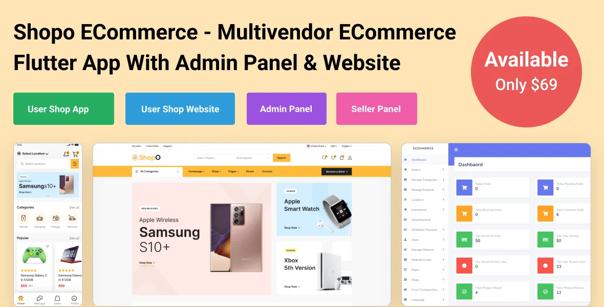 Shopo eCommerce - Multivendor eCommerce Flutter Seller App is a Flutter-based mobile solution for managing vendor accounts in a multi-seller marketplace. It features product listing, real-time order tracking, earnings reports, chat support, and multi-currency integration. Perfect for businesses using a Laravel backend and looking to scale their marketplace app.