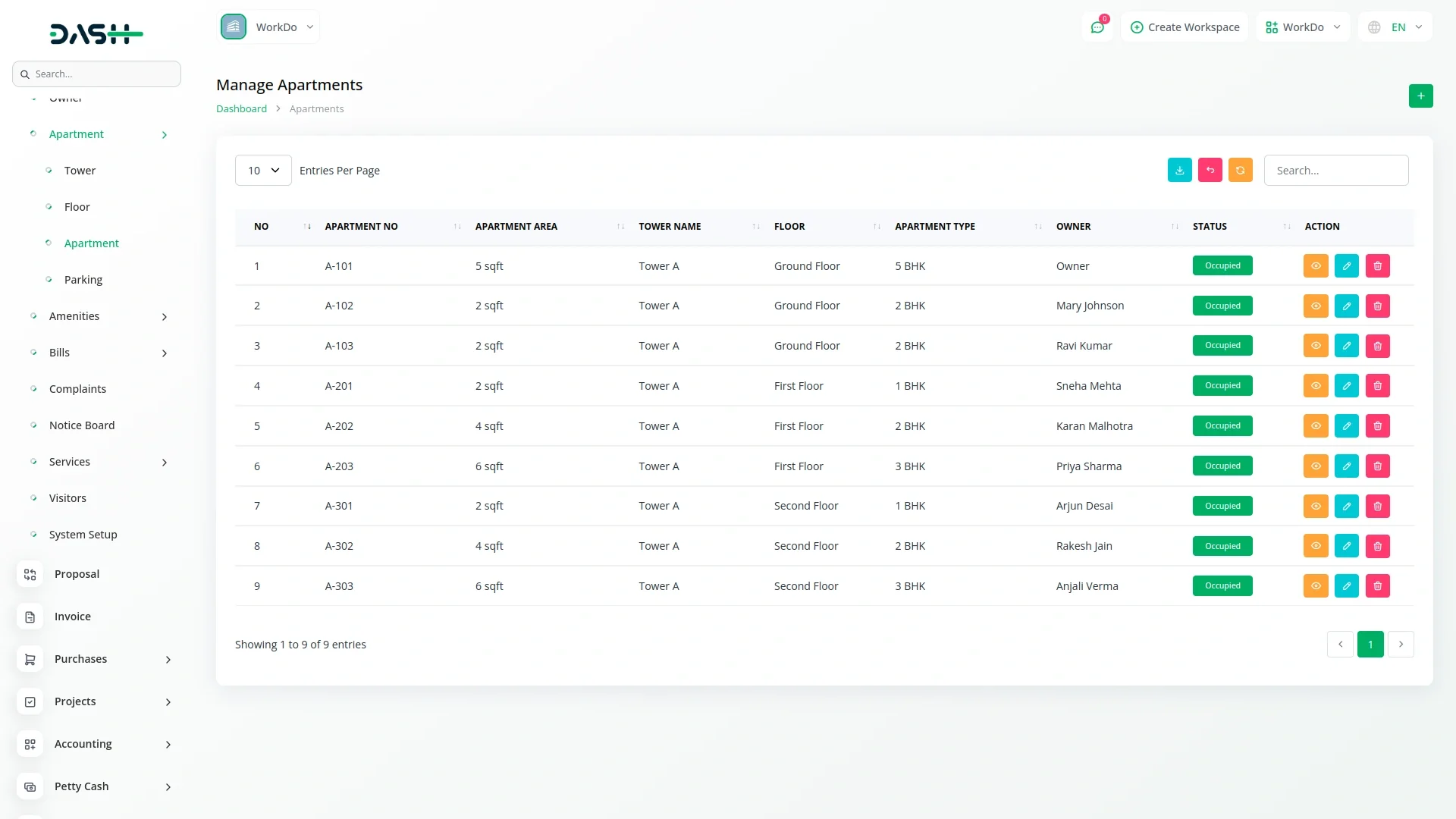 The Society Management Add-On simplifies both owner and apartment management by centralizing all essential data and giving you complete control over every detail. Whether it’s tracking resident information or organizing towers, floors, and parking spaces, everything stays structured, accessible, and easy to manage. From instant access to owner records to handling multiple apartment units and layouts, this Add-On ensures nothing is missed and day-to-day operations run smoothly.