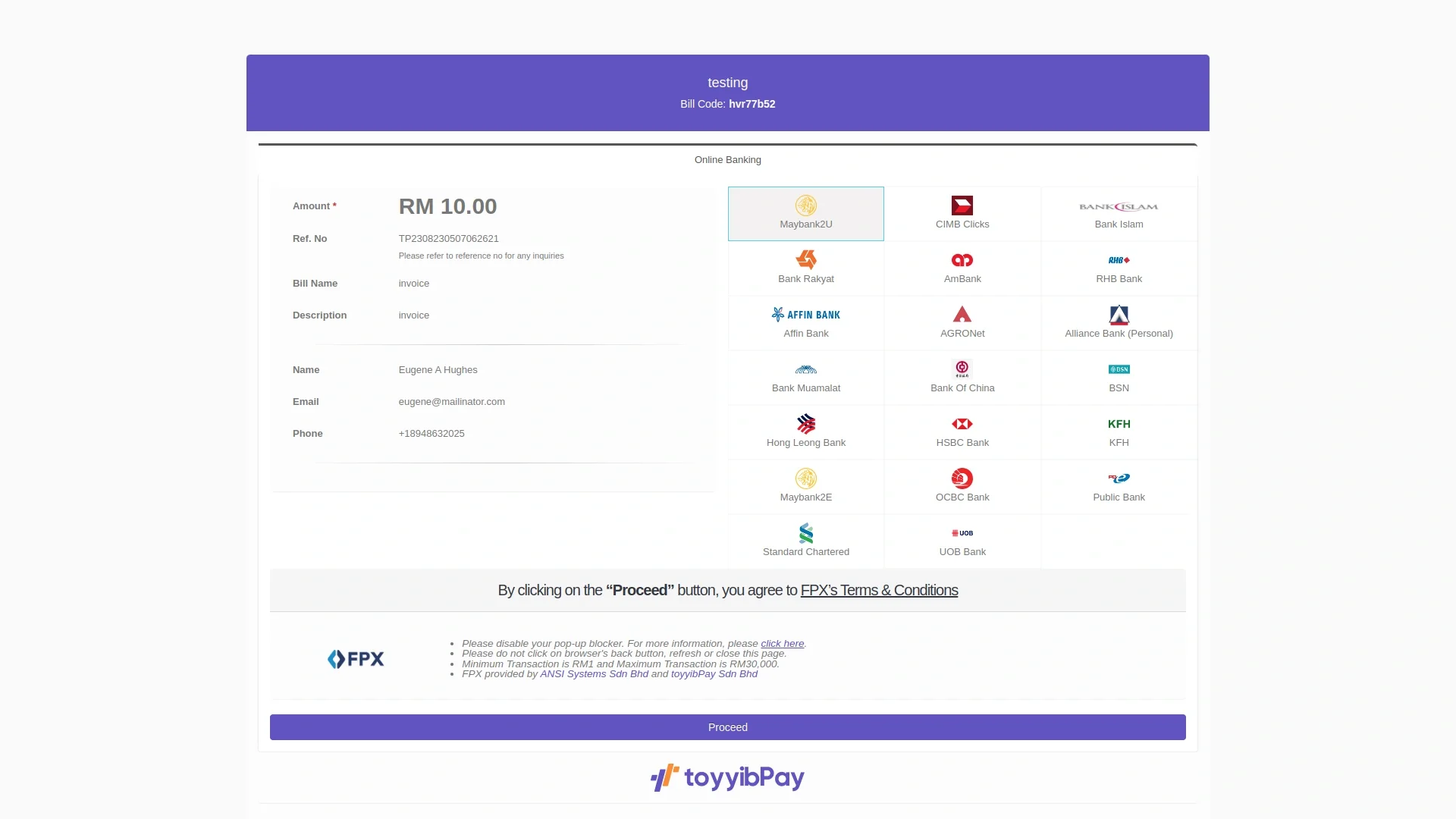toyyibPay is a payment gateway solution that allows businesses to accept online payments. With toyyibPay, customers can buy your products and pay through any local online banking through FPX. You do not need to go through the hassle of checking your account to verify the transaction as toyyibPay will do it for you through special encryption and verification technology. toyyibPay supports Ringgit Malaysia (RM/MYR) & USD currencies.