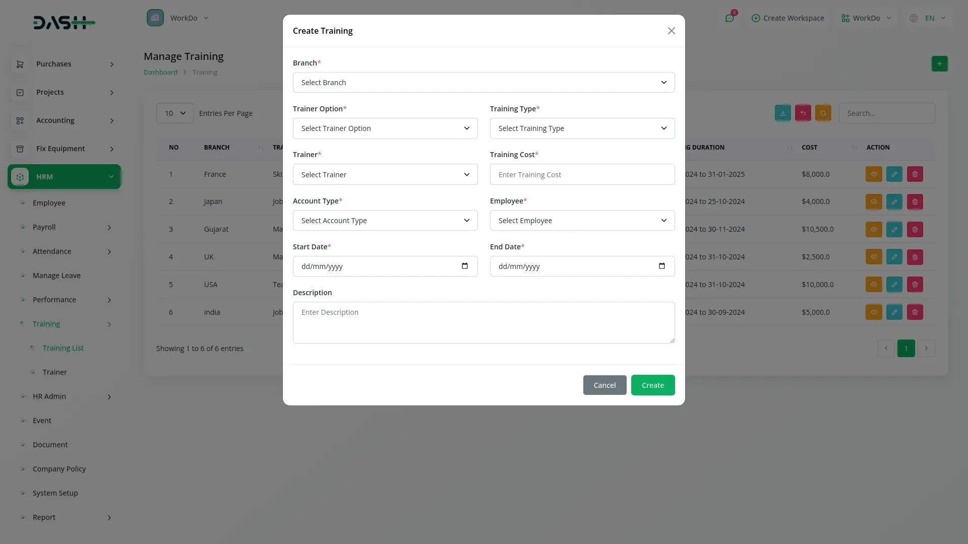 The Training – Dash SaaS Add-On empowers organizations to manage and deliver employee training programs efficiently. This intuitive training management system allows HR teams to create, assign, and track learning modules, monitor progress, and assess employee development in real time. Integrated with LMS platforms, it supports e-learning, onboarding, compliance training, and skill development. Ideal for businesses focused on upskilling teams, improving retention, and streamlining training operations through a centralized, cloud-based corporate learning and HR training software solution.